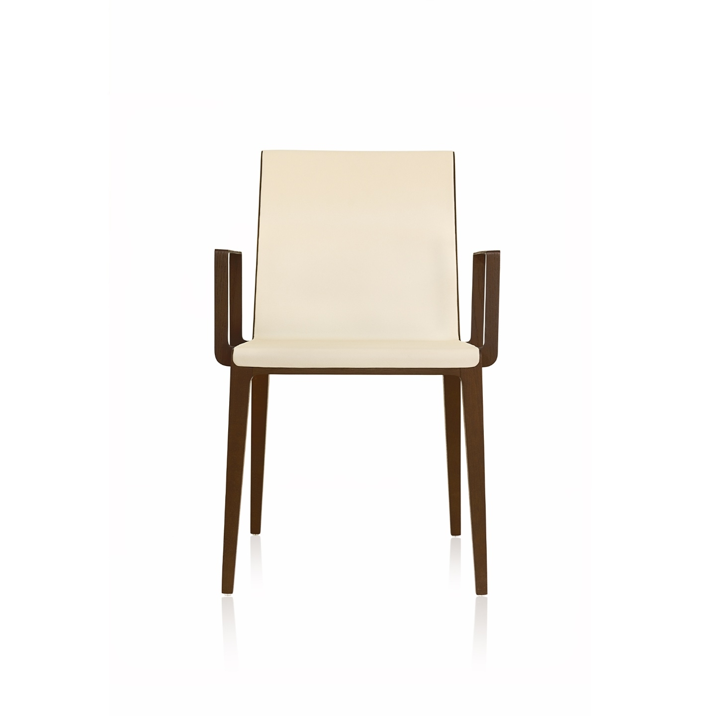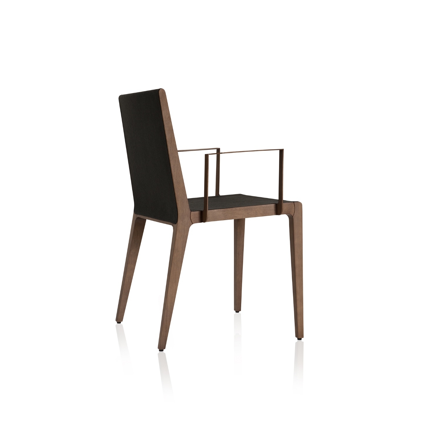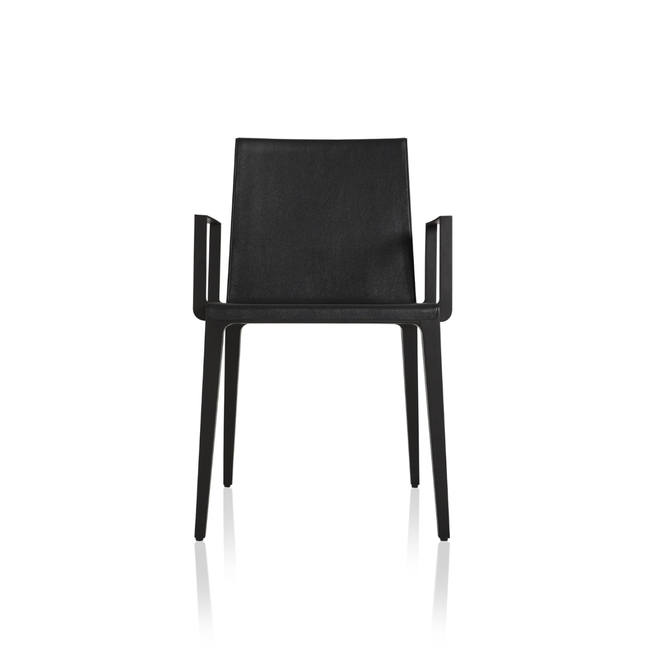 Estrutura: Madeira maciça, madeira maciça tingida Assento e encosto: Estofado revestido em tecido ou couro Braços: Lâmina natural, lâmina tingida