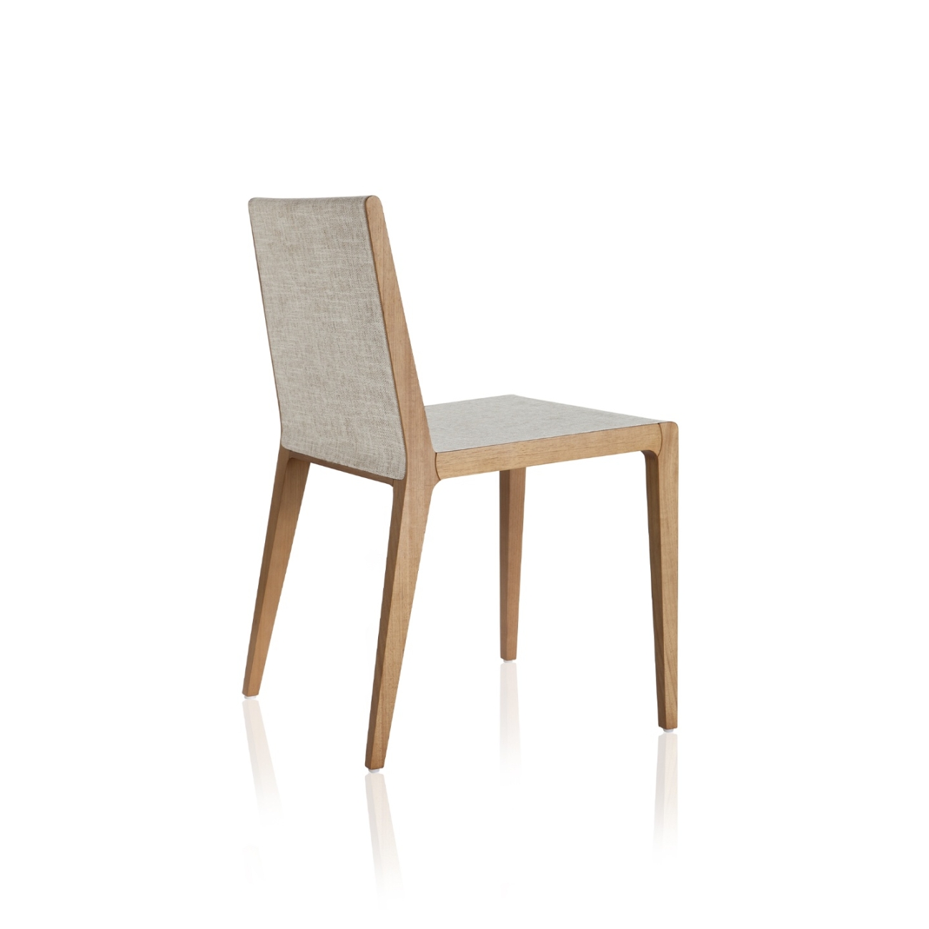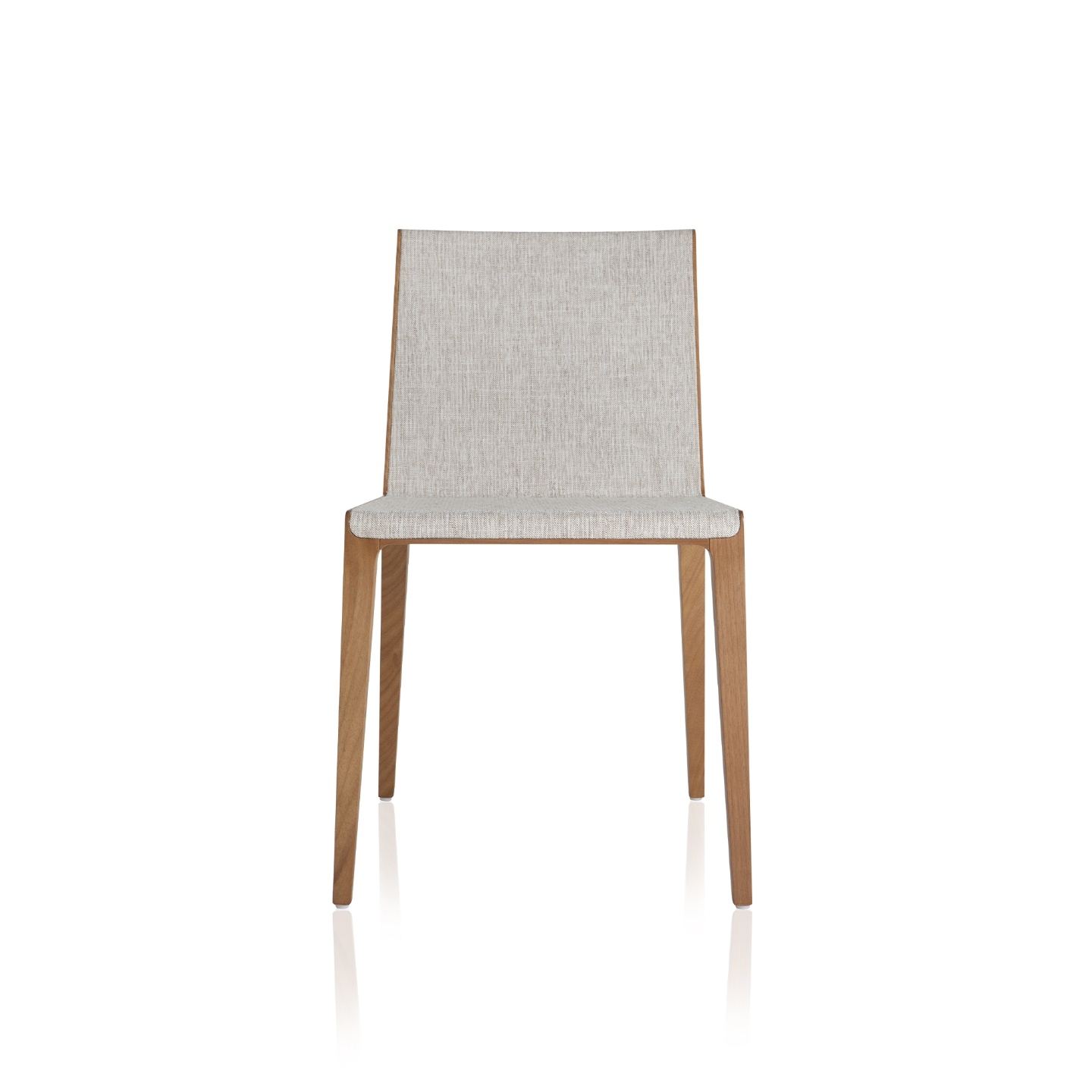 Estrutura: Madeira maciça, madeira maciça tingida Assento e encosto: Estofado revestido em tecido ou couro