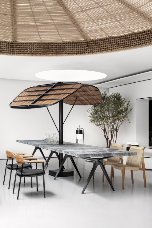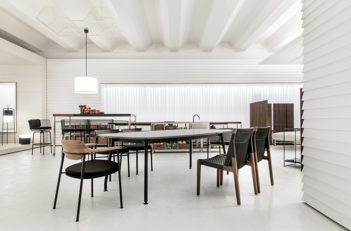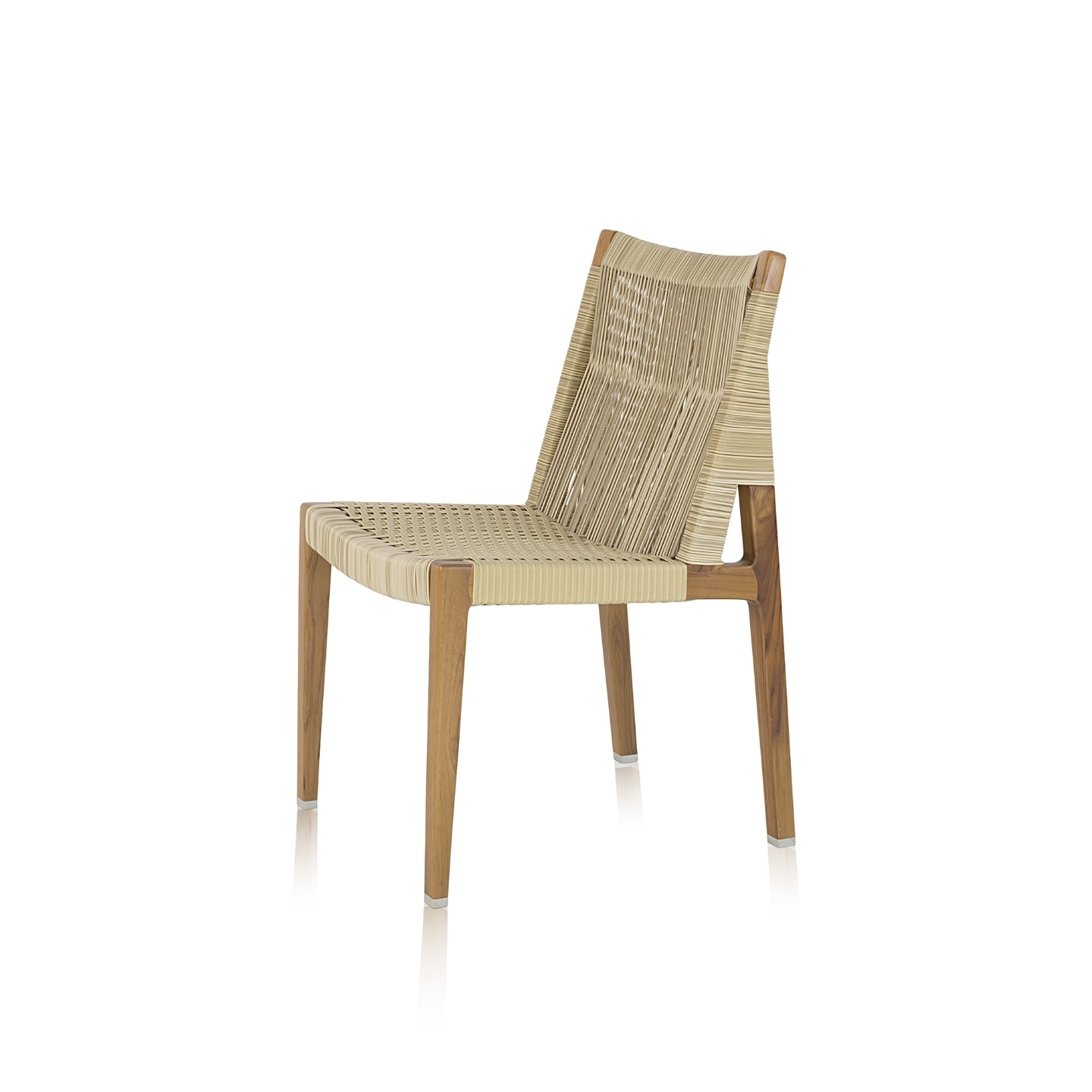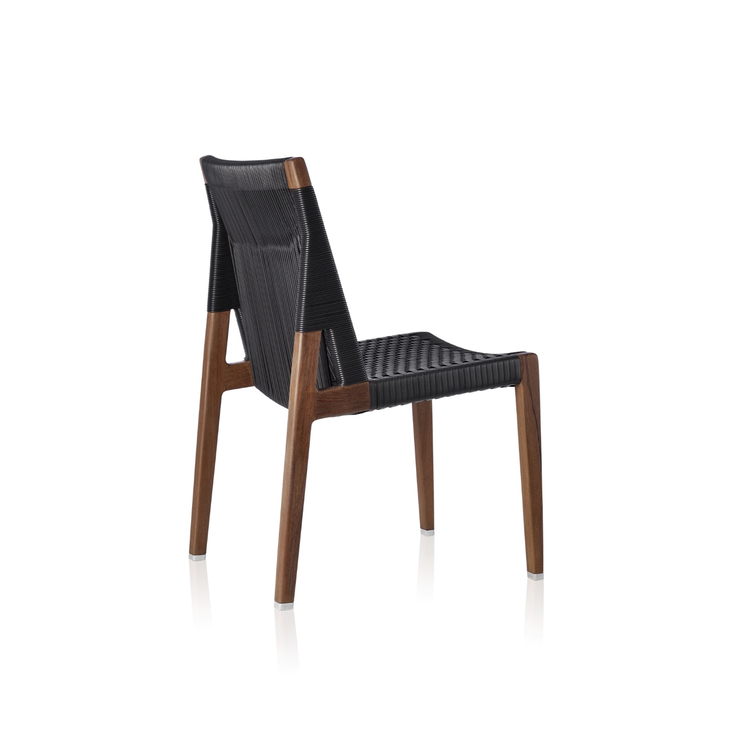 Estrutura: Madeira maciça, madeira maciça tingida Assento e encosto: Fita sintética, cordão sintético Sapatas: Metal