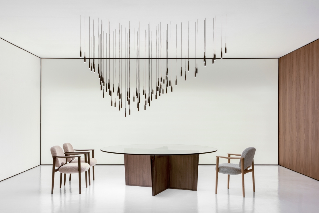 LOU é a expressão da elegância em estado puro — um equilíbrio perfeito entre design, materialidade e sensorialidade. Configurada em madeiras nobres, a estrutura parece flutuar, ora se fundindo, ora se descolando do espaço, criando uma dinâmica envolvente entre cheios e vazios. A luz que incide sobre suas formas revela novas nuances a cada instante, tornando cada ângulo uma descoberta.