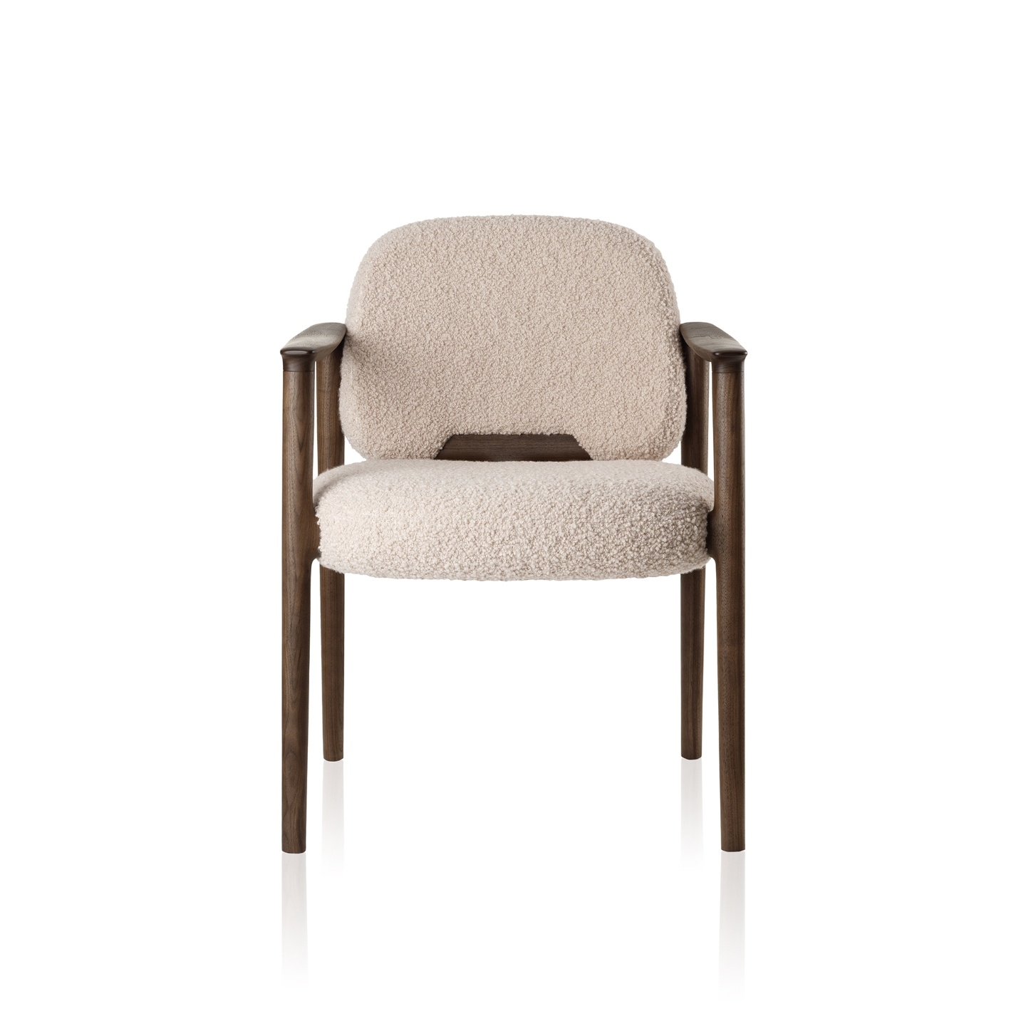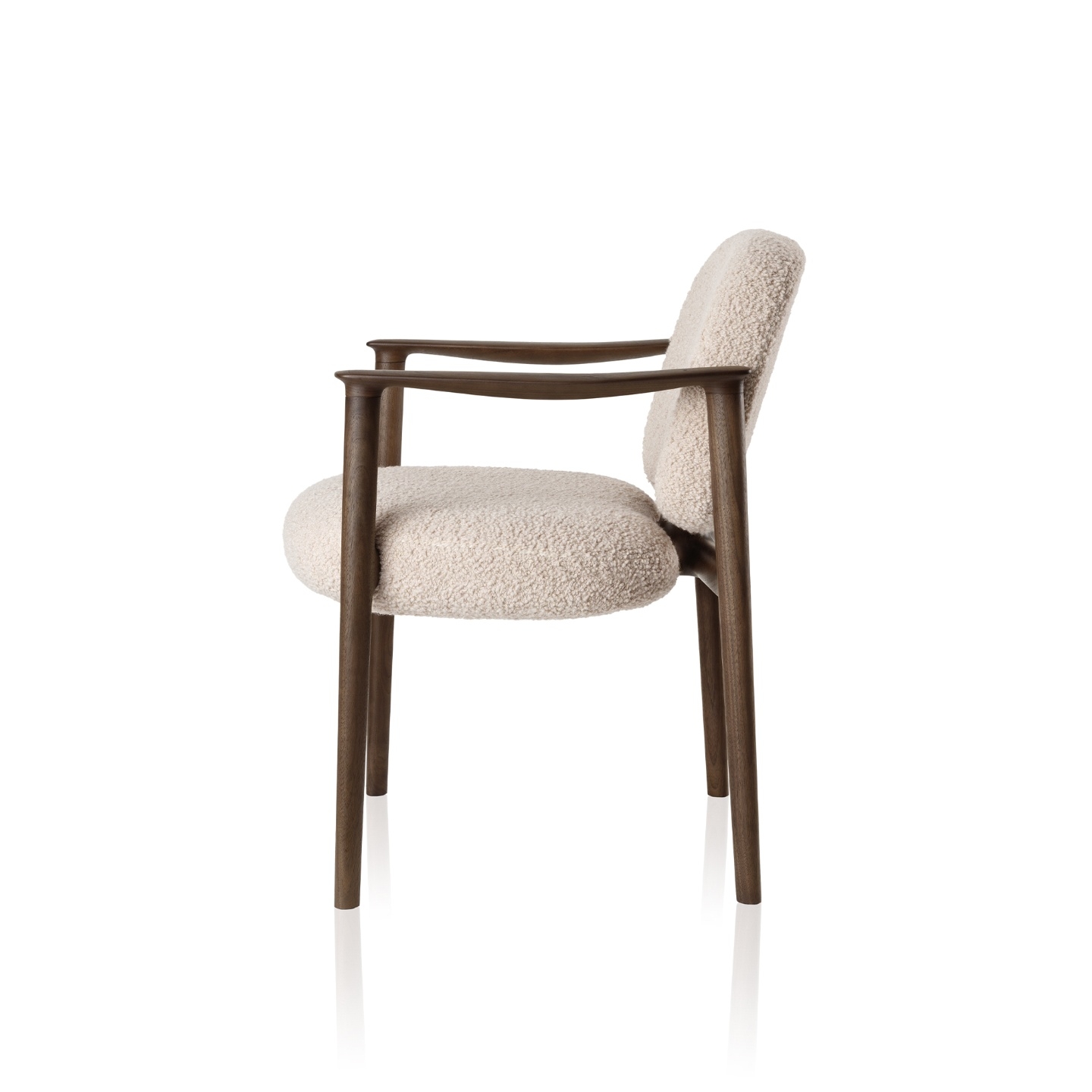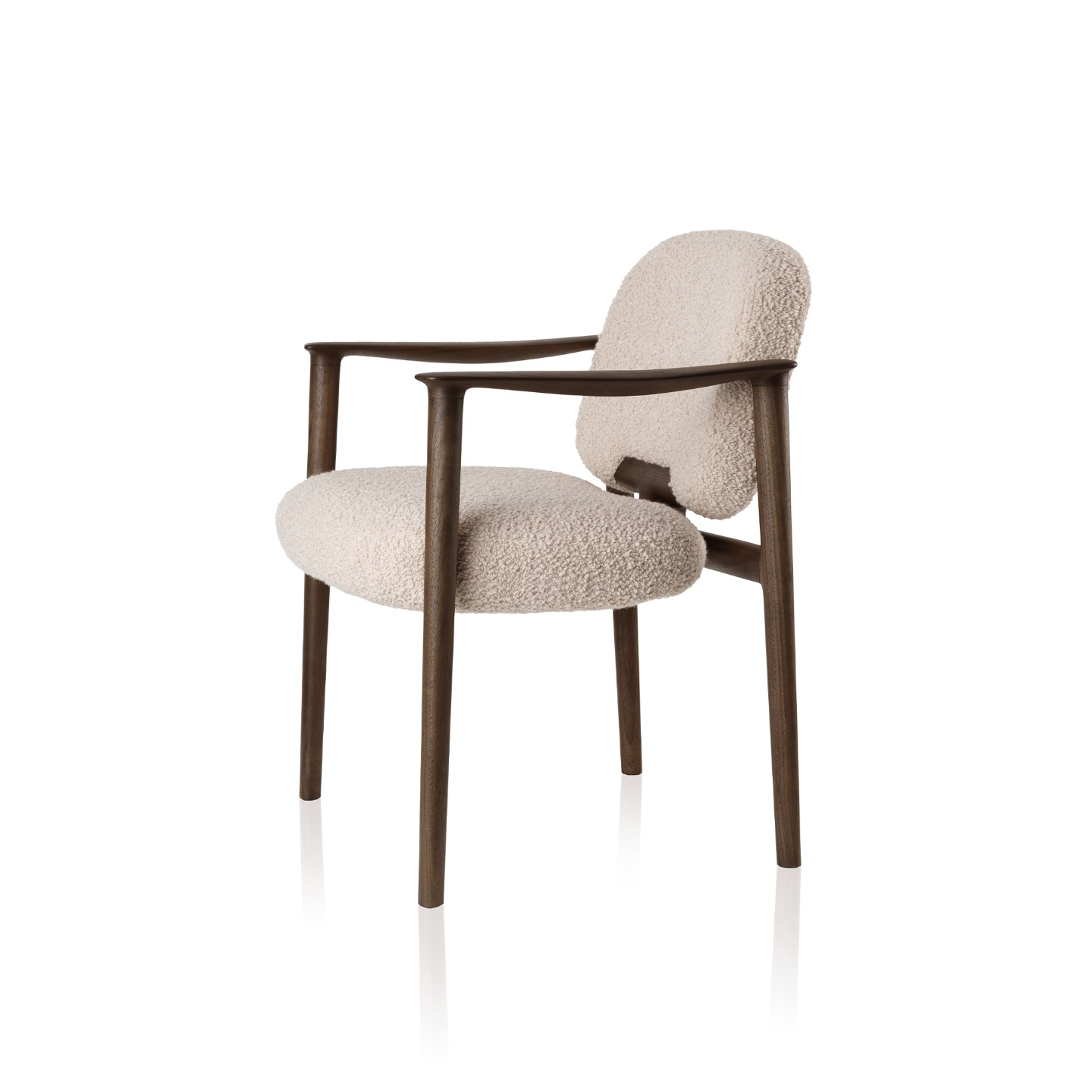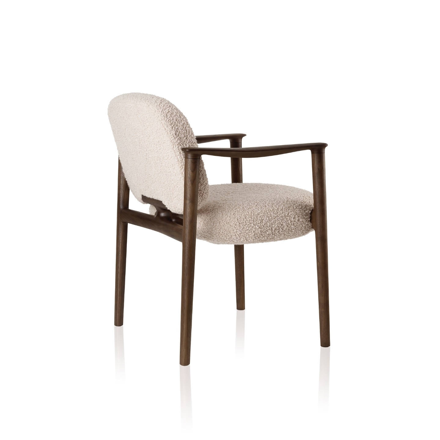 Estrutura: Madeira maciça, madeira maciça tingida Assento e encosto: Estofado revestido em tecido ou couro Braços: Madeira maciça, madeira maciça tingida