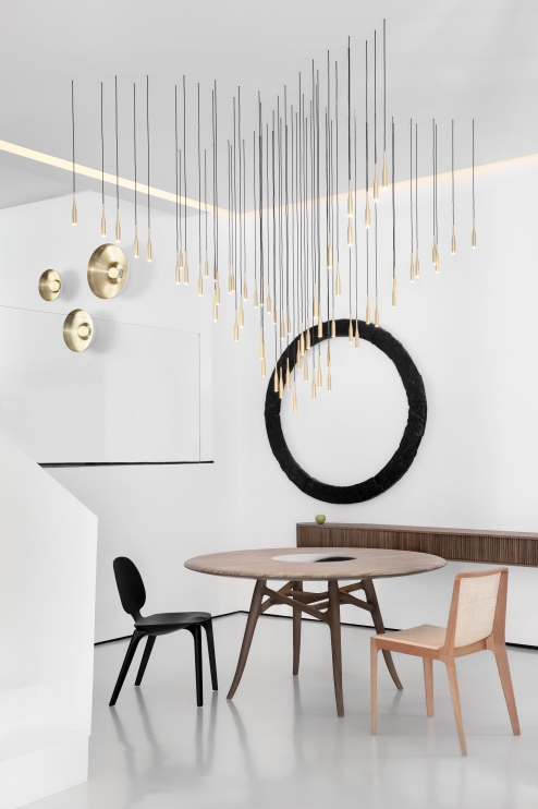 A cadeira Malha alia antigas técnicas de artesãos à produção industrial. Uma cadeira esbelta, suave e de contornos muito leves onde a ideia foi subtrair ao máximo elementos e massa para resultar em um aspecto mínimo.