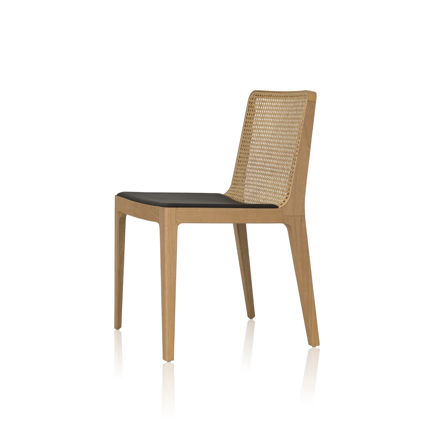 Estrutura: Madeira maciça, madeira maciça tingida Assento: Estofado revestido em tecido ou couro Encosto: Palha de rattan, palha de algodão