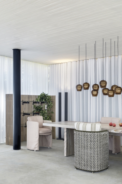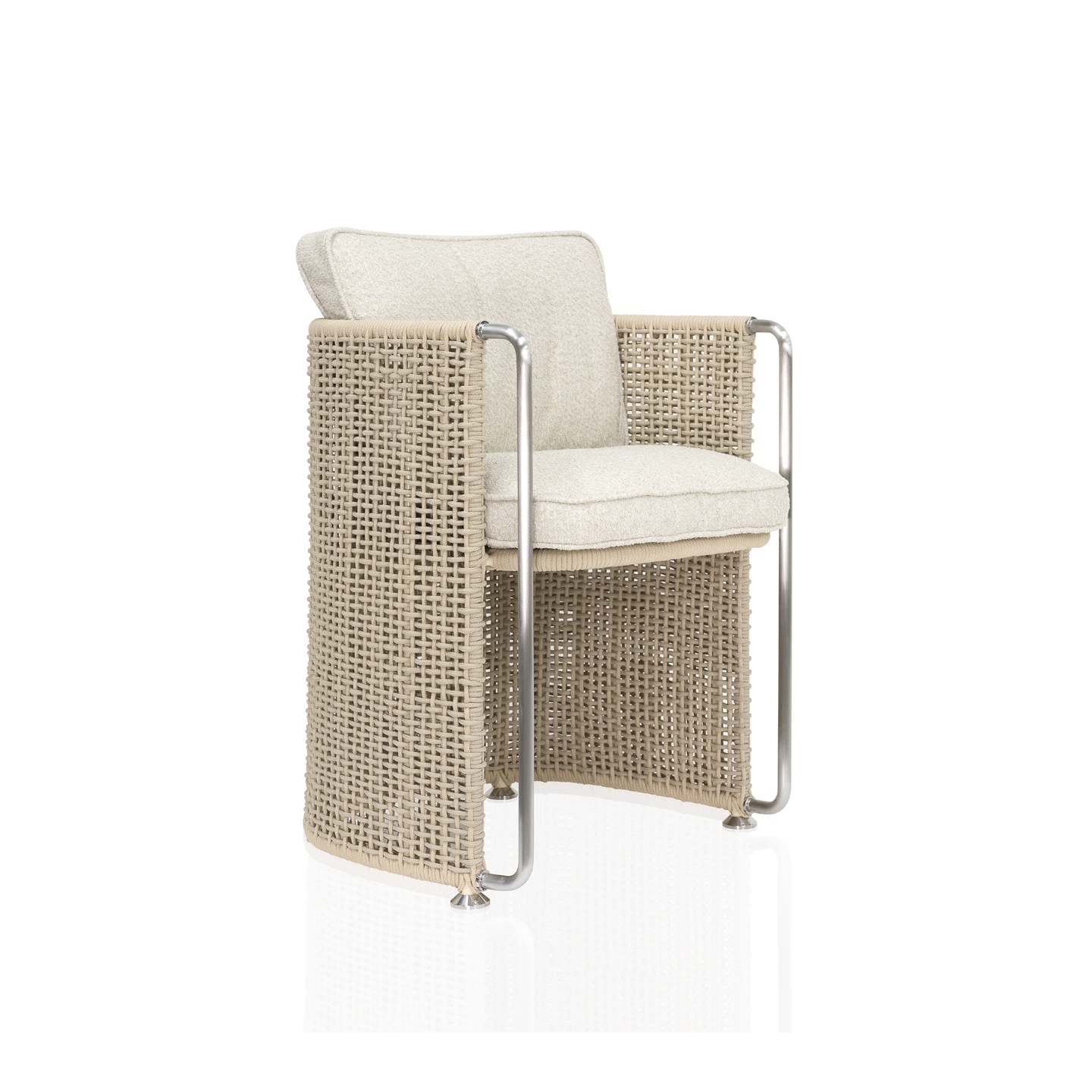 A coleção Nicc é inspirada em um arquétipo de peças, composto por dois semicírculos que formam a estrutura dos braços, enquanto estofados generosos de assento e encosto convidam ao relaxamento. Com uma variedade de acabamentos disponíveis, que vão desde tramas de corda náutica até capas que conferem um aspecto despojado e casual, esta coleção é especialmente adequada para ambientes externos, proporcionando conforto e estilo.
