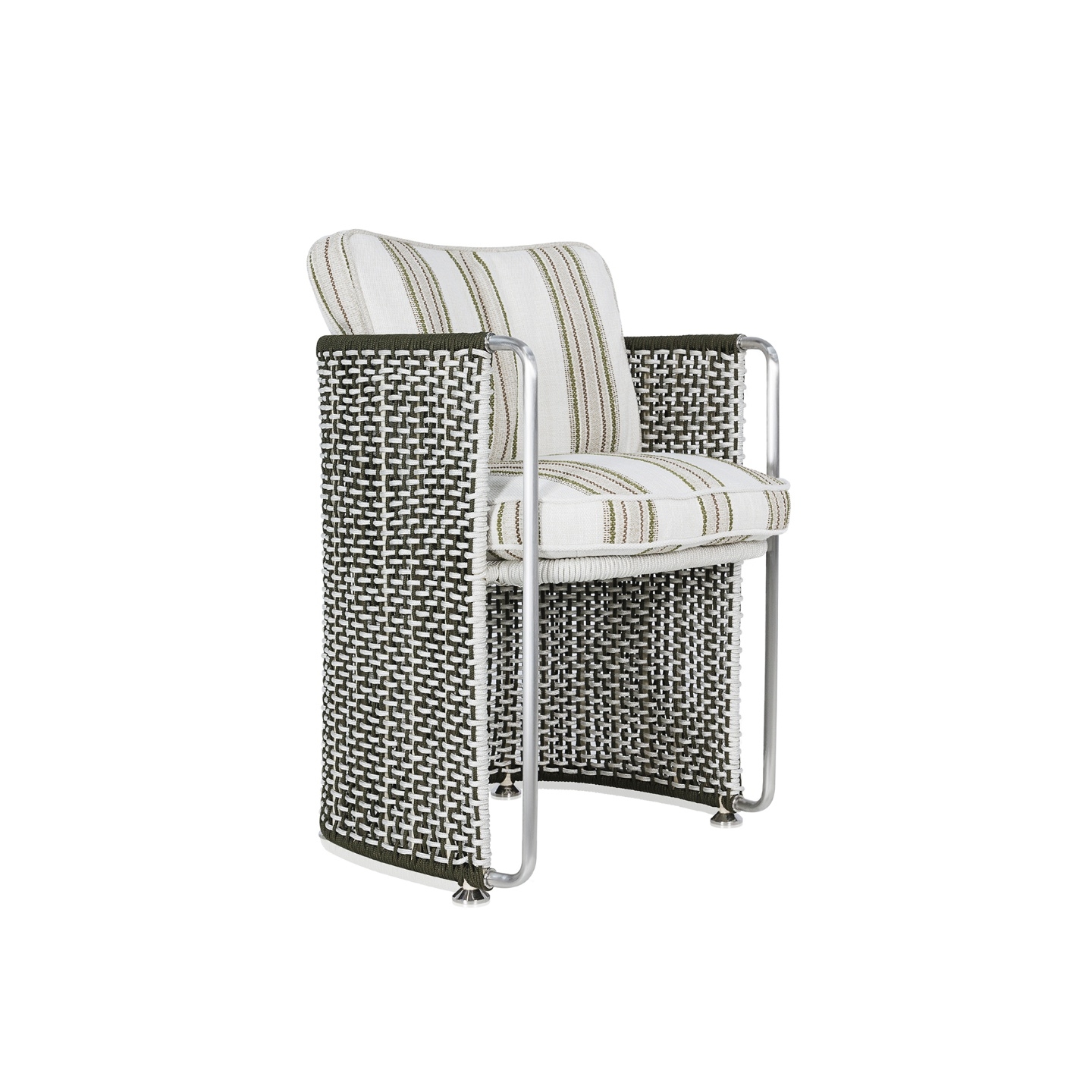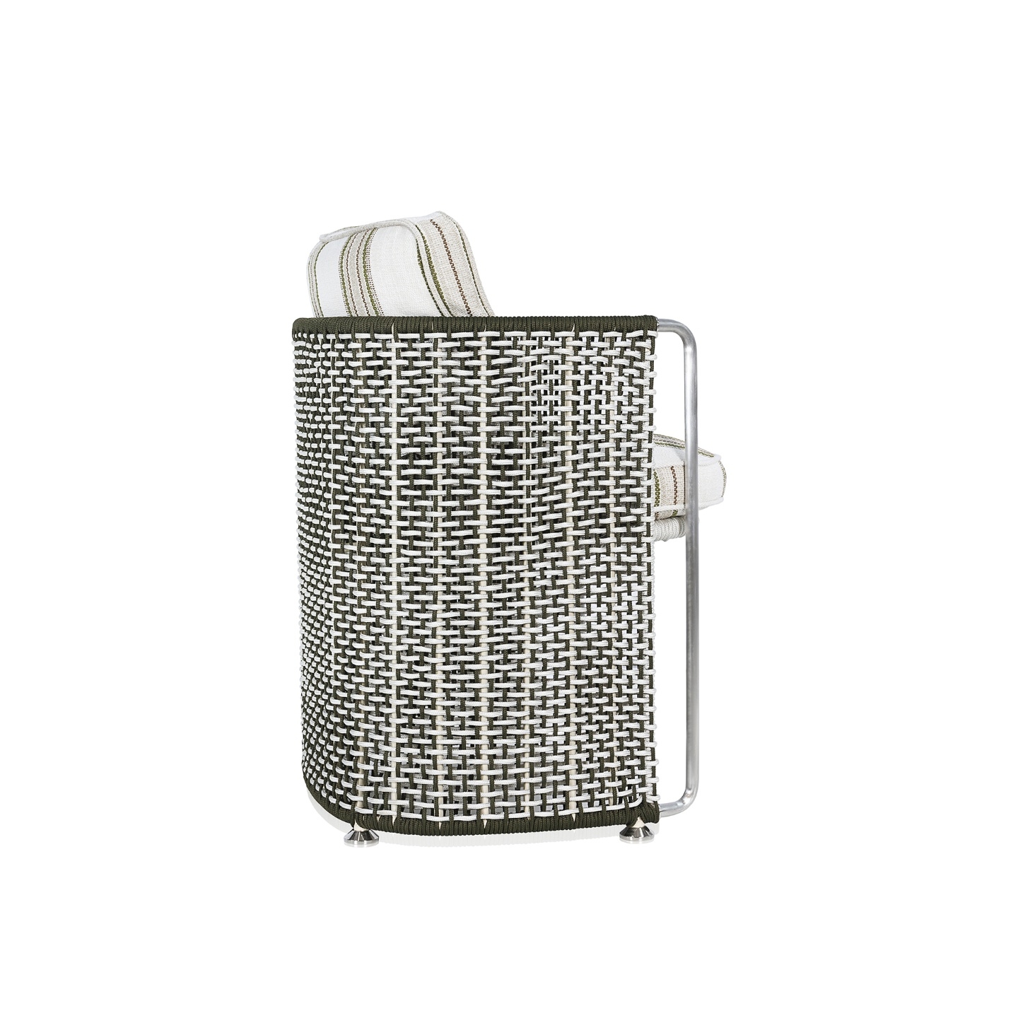 Estrutura: Metal, pintura eletroestática Assento e encosto: Corda náutica, estofado revestido em tecido Braços: Corda náutica, estofado revestido em tecido Assento superior: Estofado revestido em tecido