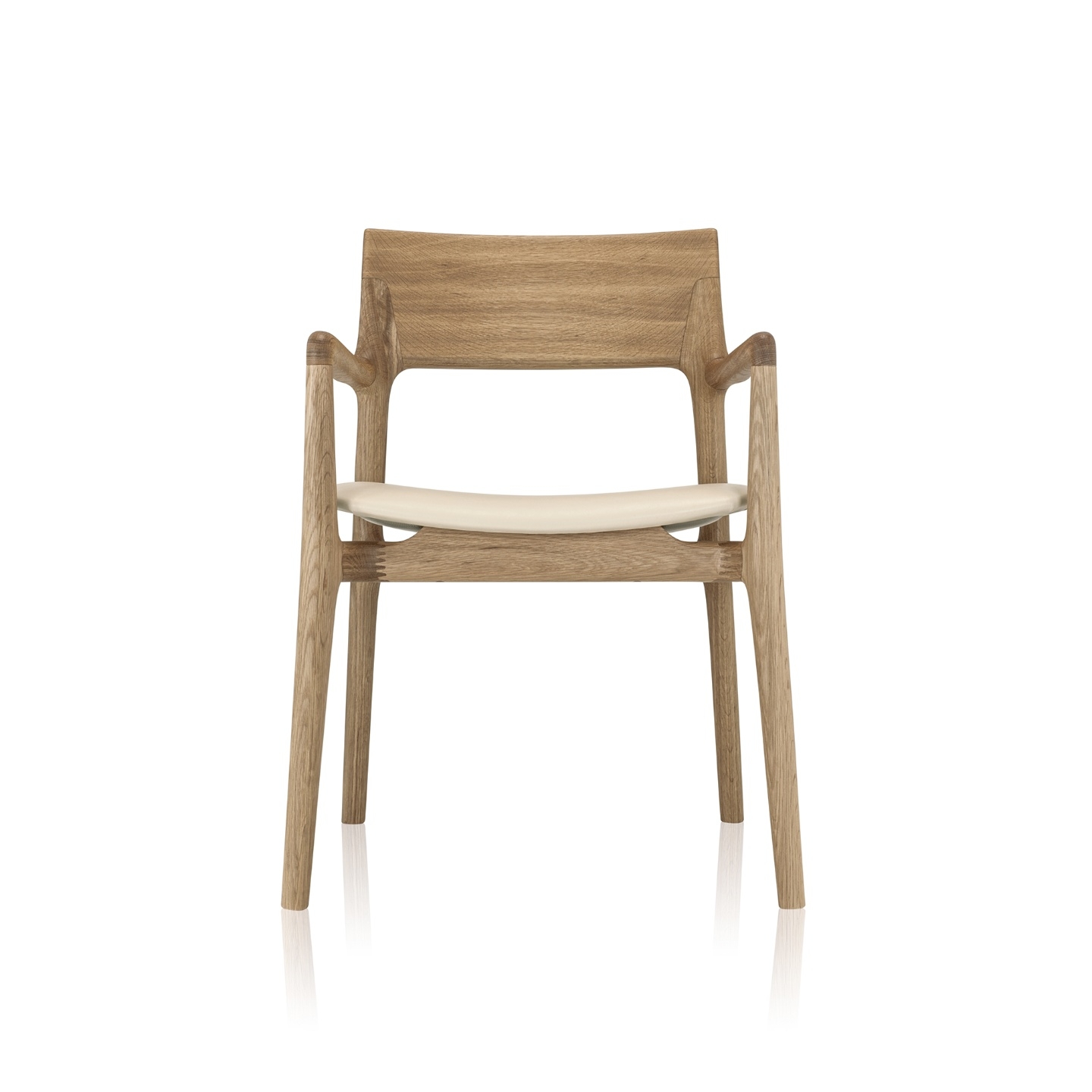 Estrutura: Madeira maciça, madeira maciça tingida Encosto: Madeira maciça, madeira maciça tingida Braços: Madeira maciça, madeira maciça tingida Assento: Estofado revestido em tecido ou couro