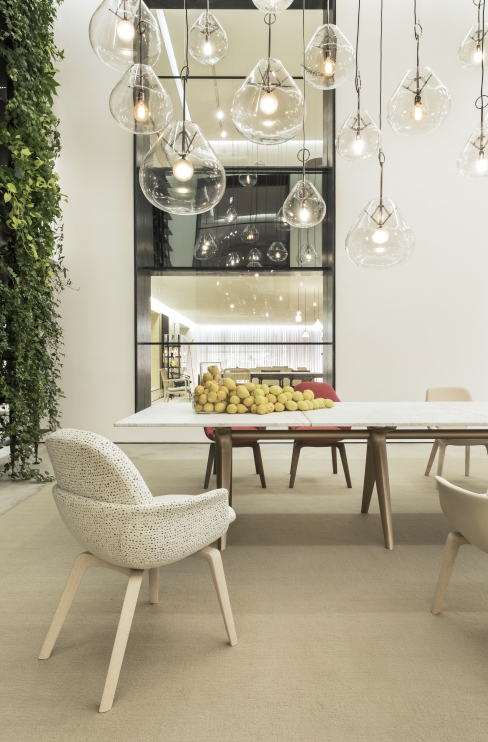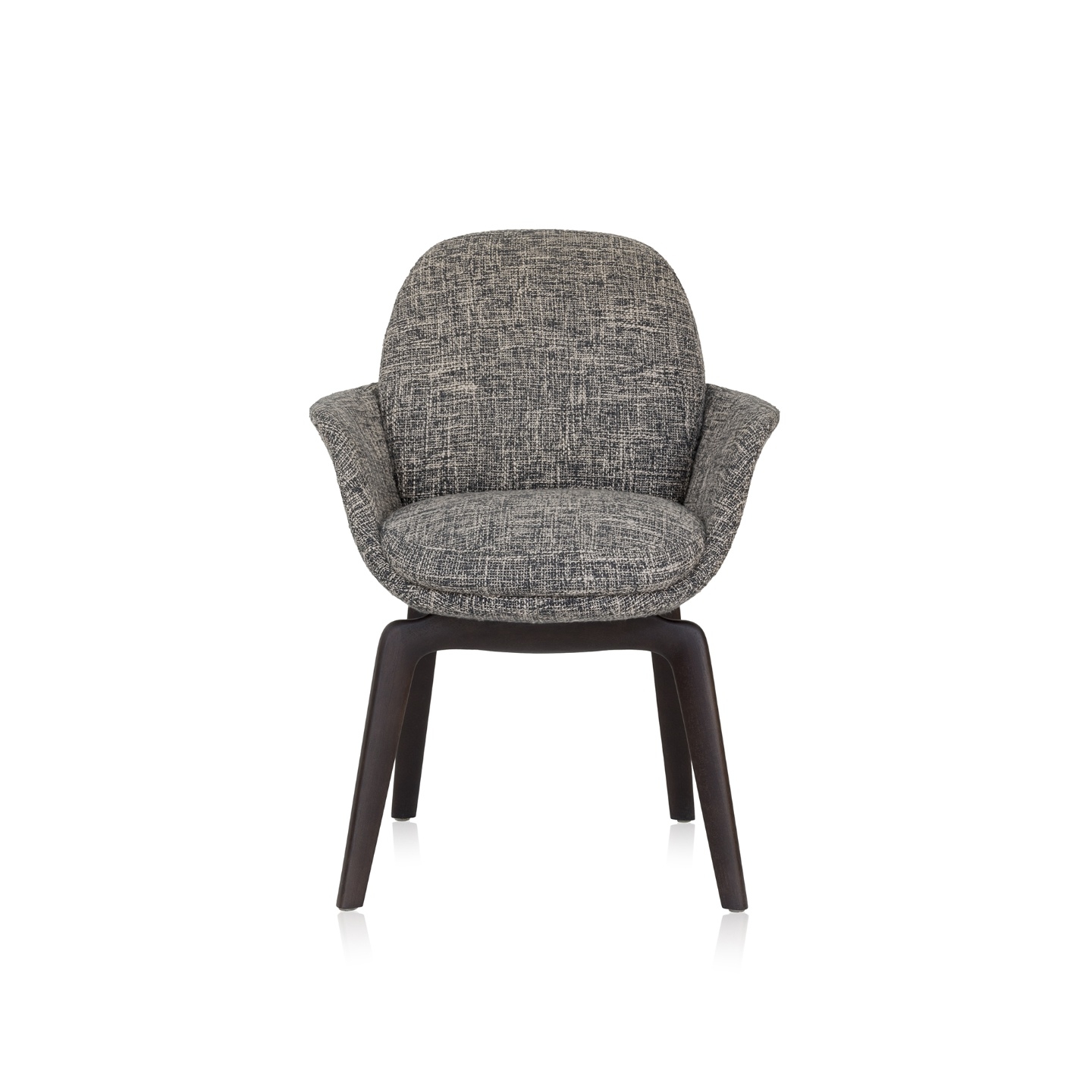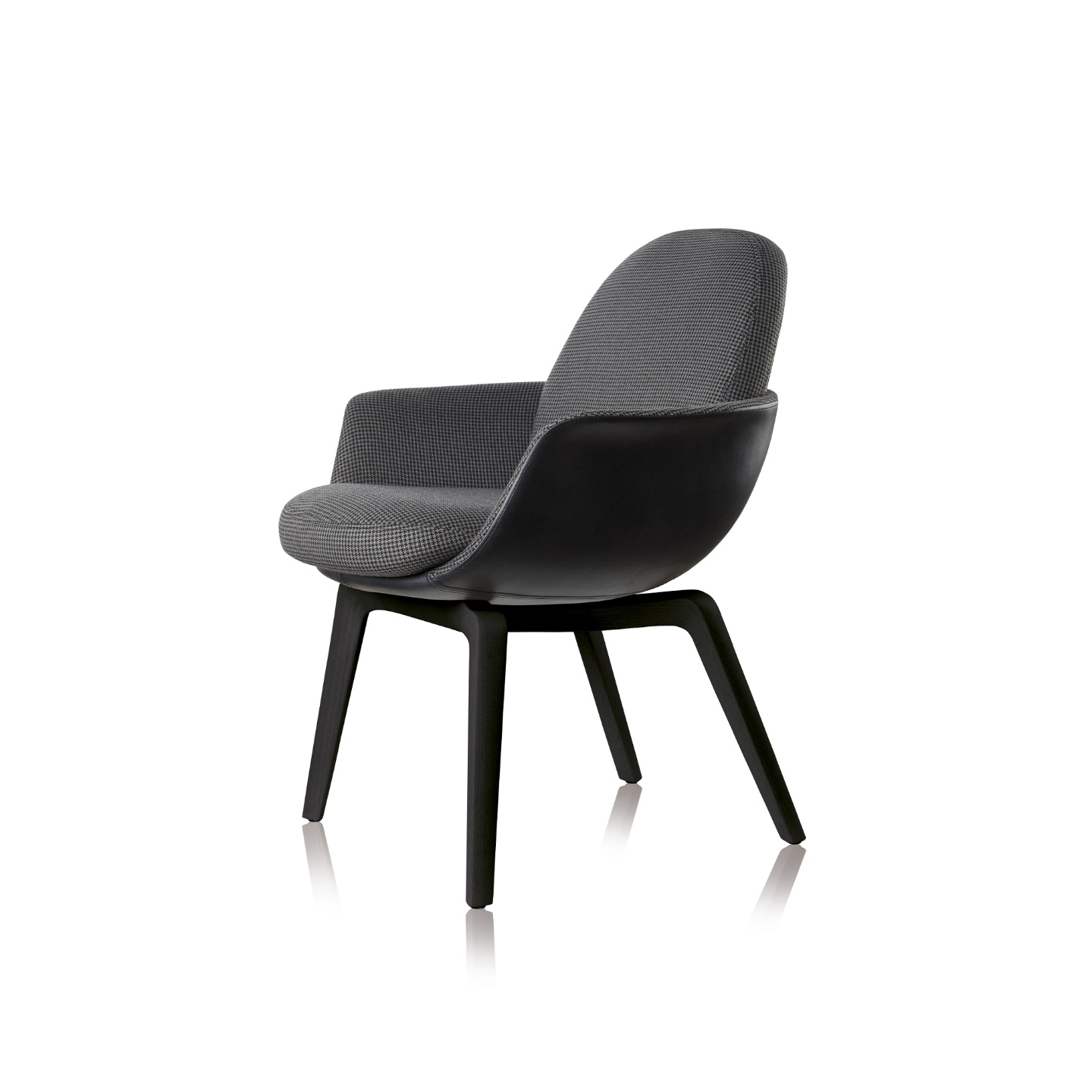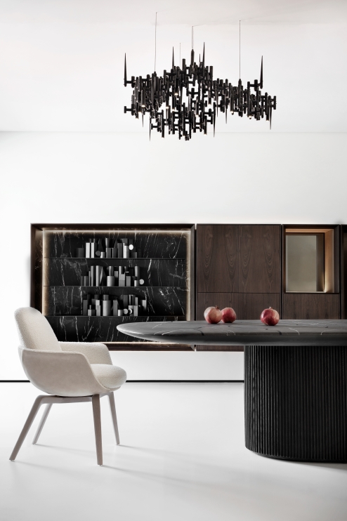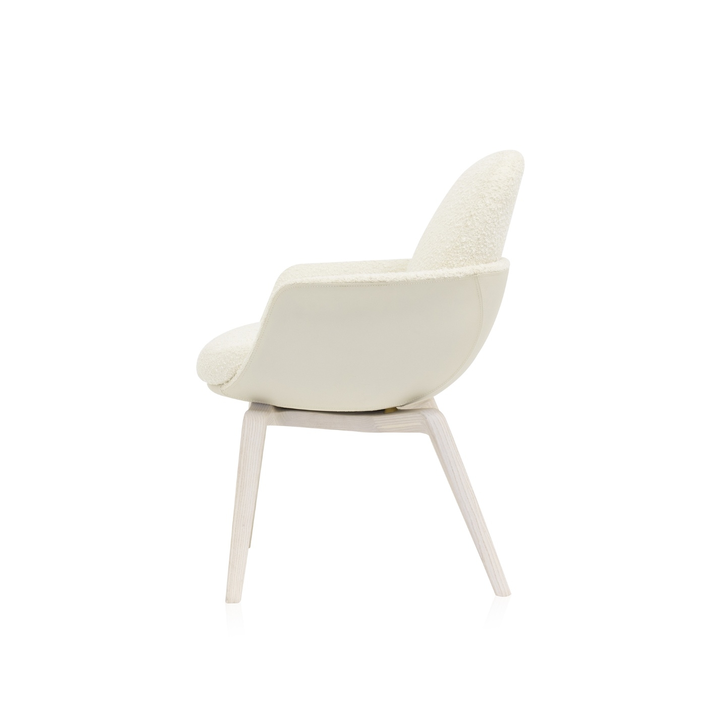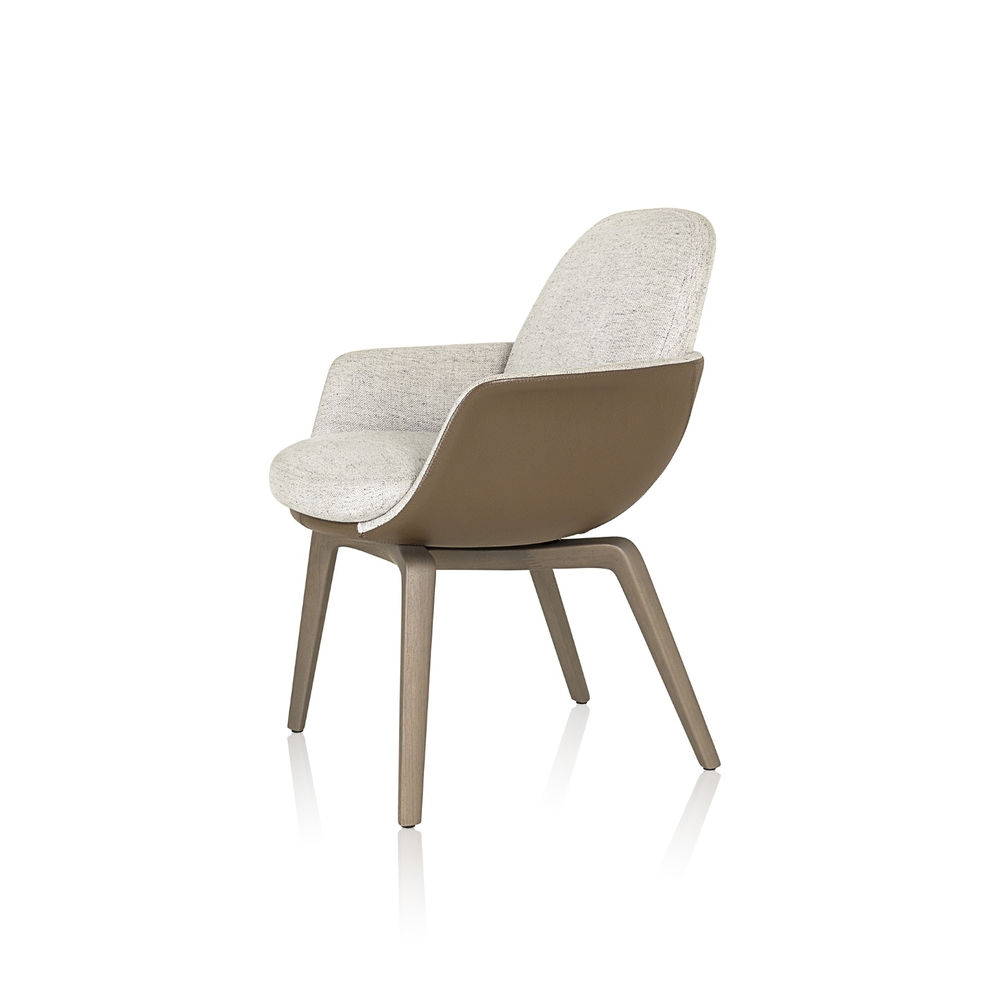 A cadeira Satti comunica de forma clara o estilo atual sob a estética atemporal. As curvas e volumes orquestrados denotam harmonia e leveza. A combinação de tecidos ou couros com a madeira faz de cada escolha uma peça exclusiva. Quando em uso, o conforto é garantido pela formatação anatômica da concha e pela composição estofada que abraçam o corpo.