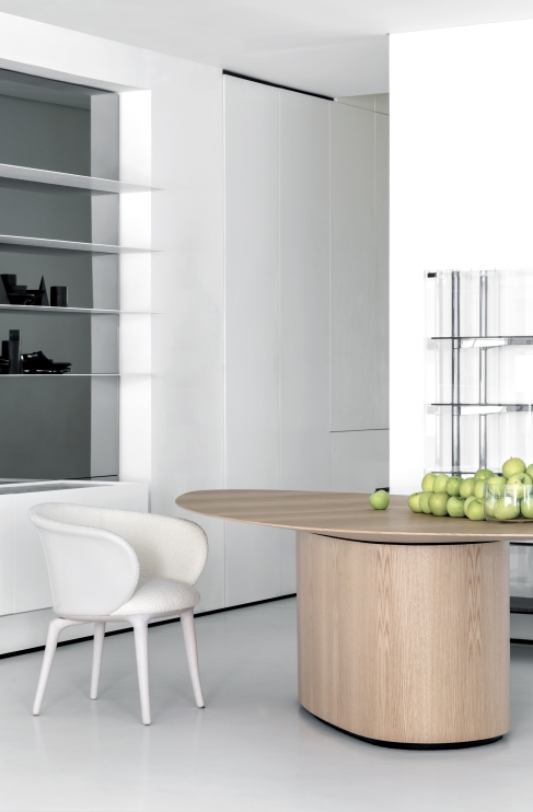 Um arquétipo de cadeira, no entanto, refinado à exaustão da depuração para atingir a curva perfeita e harmônica com um inquestionável conforto.