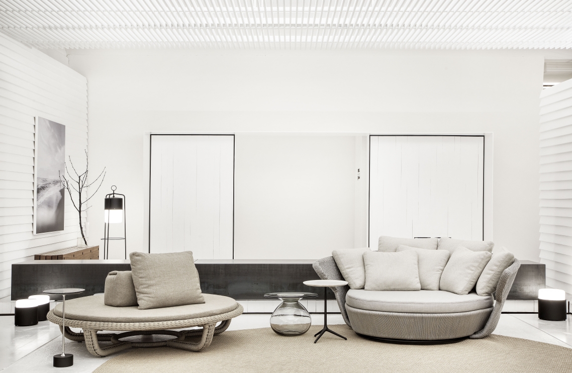 Bem-estar e conforto em ambientes de transição interno-externo são as premissas para a linha BEA. Com estrutura composta por uma sofisticada trama de cordas náuticas, possui um encosto de linhas fluidas e elegantes, que aparam suas aconchegantes almofadas e permitem relaxamento imediato a quem nela senta.