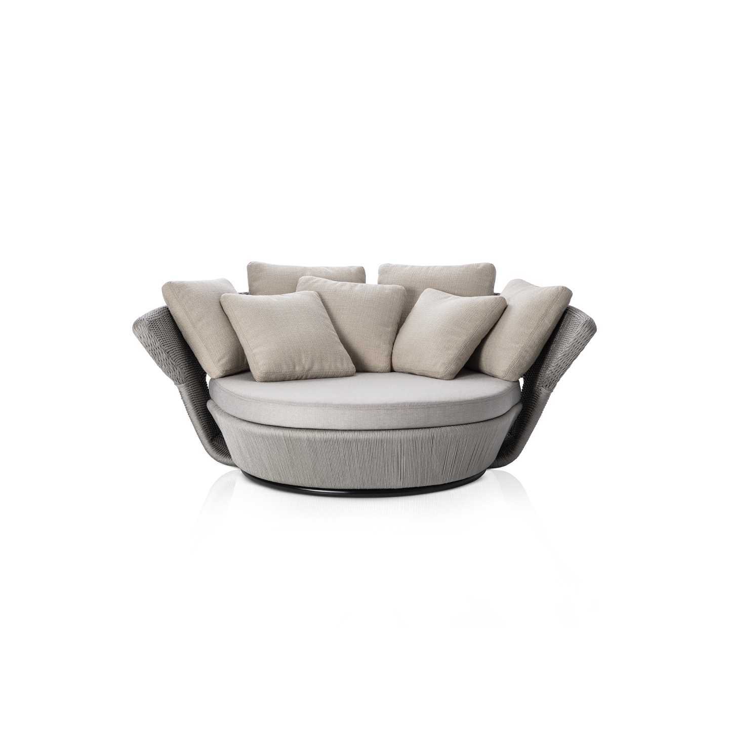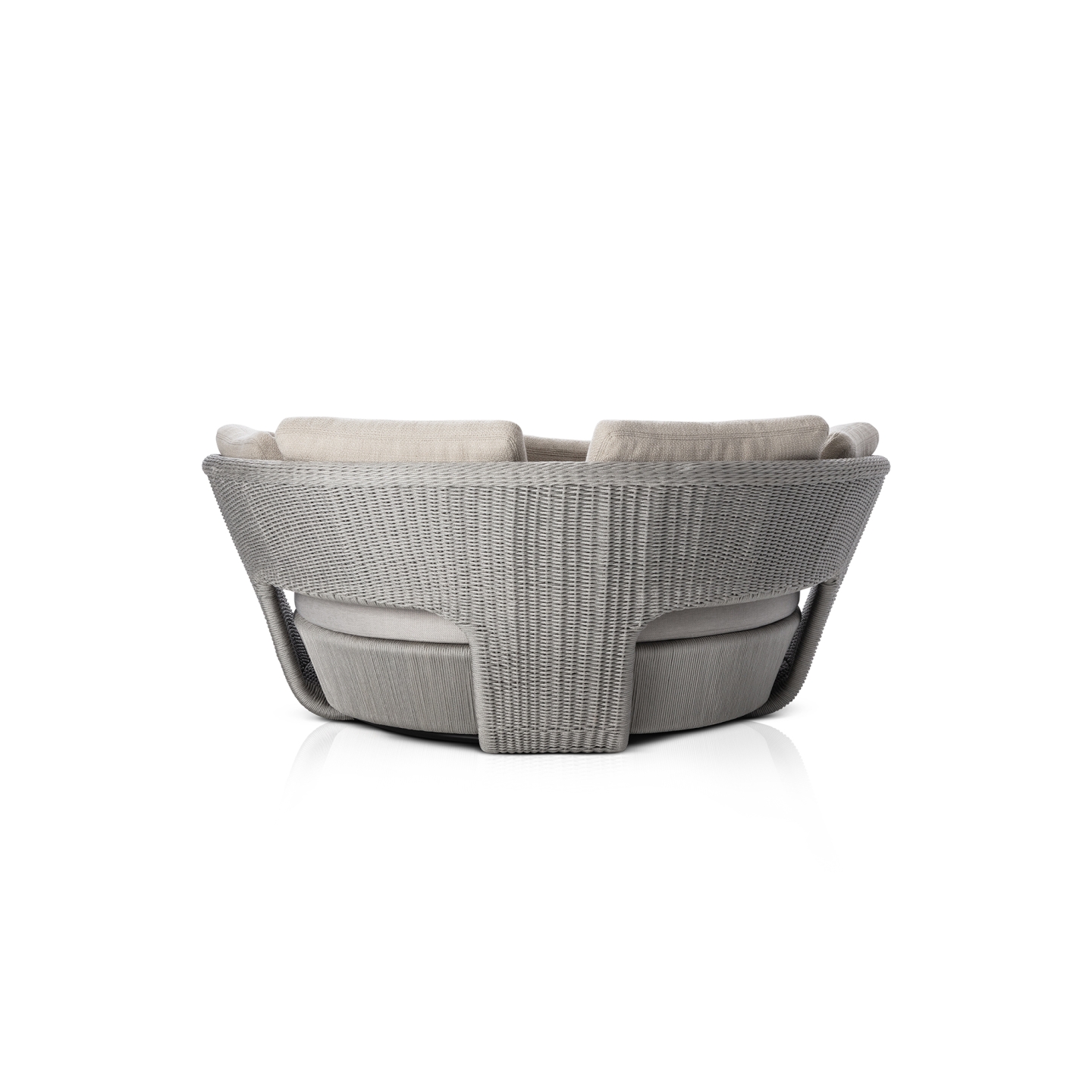 Bem-estar e conforto em ambientes de transição interno-externo são as premissas para a linha BEA. Com estrutura composta por uma sofisticada trama de cordas náuticas, possui um encosto de linhas fluidas e elegantes, que aparam suas aconchegantes almofadas e permitem relaxamento imediato a quem nela senta.