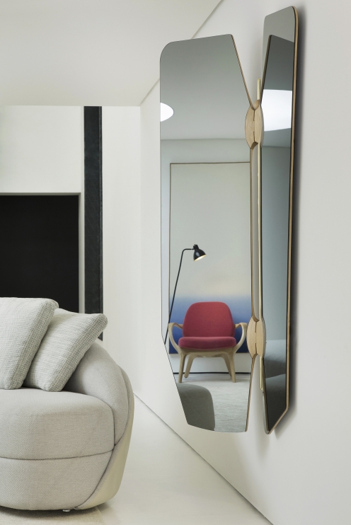 As formas distintas e os materiais delicadamente escolhidos fazem do espelho Milan um objeto extraordinário e performático que celebra a harmonia dos materiais de maneira elegante e sutil.