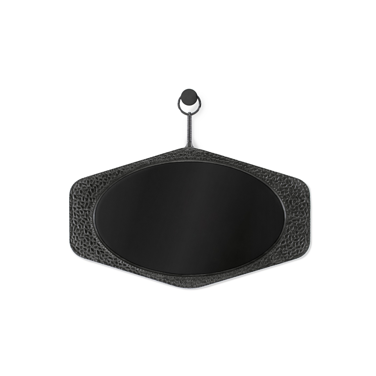 A forma escultórica do espelho ROCCA, remete a rochas e torna a peça muito instigante do ponto de vista formal. A harmonia entre o tom escurecido do espelho e a textura da madeira transforma o acessório em um objeto extraordinário.