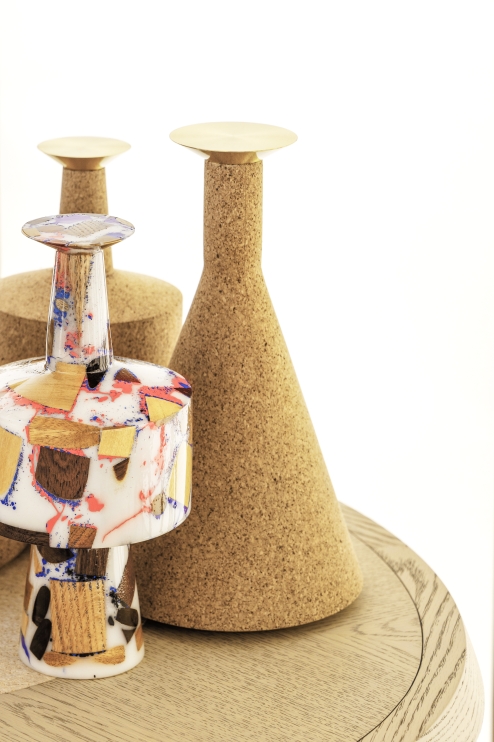 Estrutura: Madeira maciça, madeira maciça tingida, cortiça