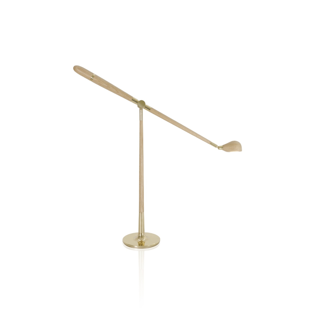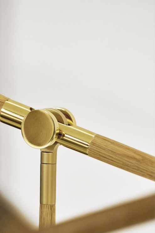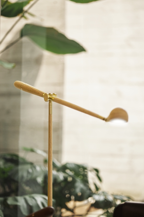 O equilíbrio entre a madeira e os metais garante beleza e identidade. O desenho calmo e elegante é fácil interpretar, além das possibilidades de regular a direção da luz, a leveza e a delicadeza das formas fazem com que esta luminária se comunique naturalmente com todos os objetos em seu contexto.