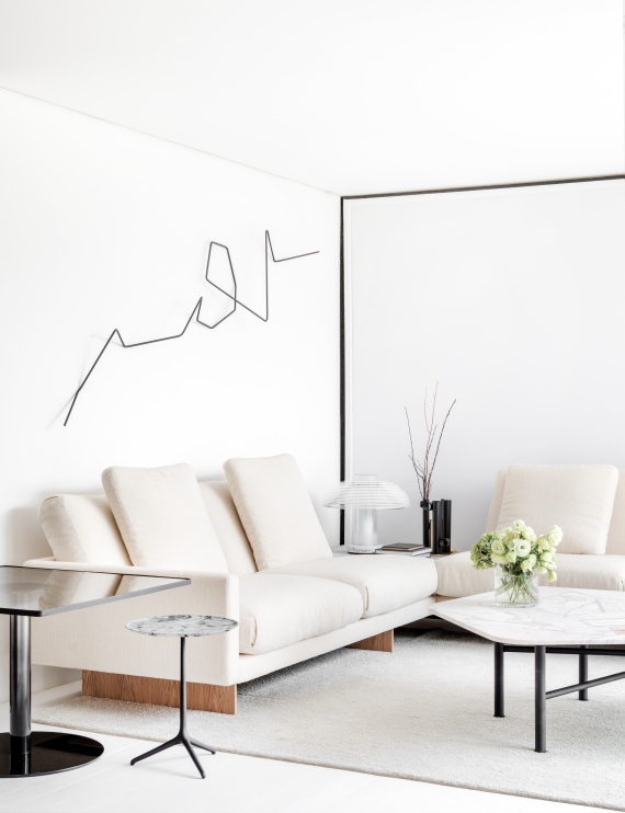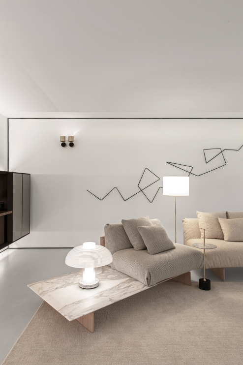 Um corpo clássico formado por um apoio central e cúpula semiesférica tem a lógica da luz subvertida. A fonte luminosa não parte de dentro da cúpula, mas sim, de um cilindro leitoso dentro de outro cilindro semitransparente que forma o eixo central. O resultado é mágico.