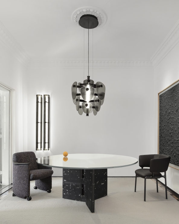 Estrutura: Laca, metalizado Parafusos: Metal Aletas: Vidro