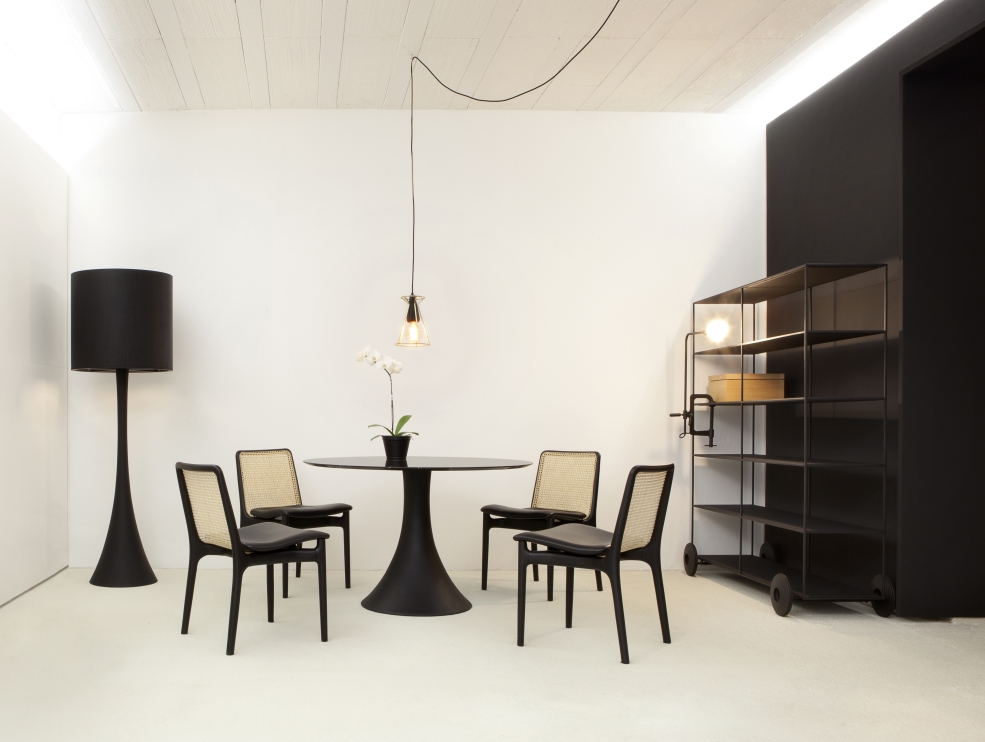 Estrutura: Madeira maciça tingida Cúpula: Lâmina natural, lâmina tingida