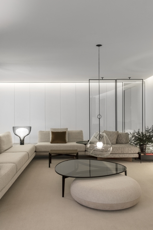 A harmonia entre materiais como metal, vidro e mármore, bem como a precisão nos detalhes, fazem com que a luminária GHOST se assemelhe a uma peça de joalheria. Sua forma orgânica e de geometria radial é escultórica, e faz com que a peça sobressaia a função principal de iluminar, e gere versatilidade às diferentes interpretações para qualquer ambiente.