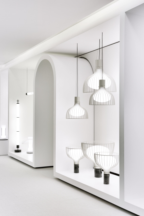 A harmonia entre materiais como metal, vidro e mármore, bem como a precisão nos detalhes, fazem com que a luminária GHOST se assemelhe a uma peça de joalheria. Sua forma orgânica e de geometria radial é escultórica, e faz com que a peça sobressaia a função principal de iluminar, e gere versatilidade às diferentes interpretações para qualquer ambiente.