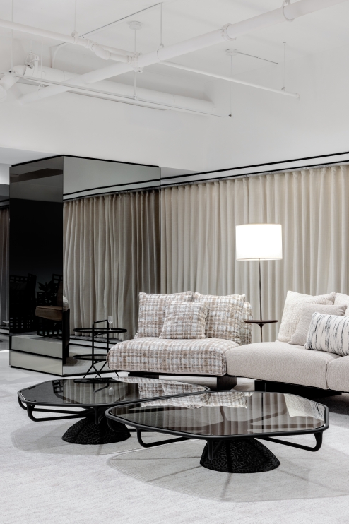 A mesma matriz de desenho e proporções das luminárias Jardim, lançadas em 2015, compõem a proposta dessas novas peças. Com cúpulas em tecido cru, elas proporcionam uma iluminação difusa e aconchegante. São apresentadas em cinco abordagens formais que diferem entre si em diâmetro, apoio e alturas, e formam um conjunto completo para soluções de iluminação complementar em ambientes.