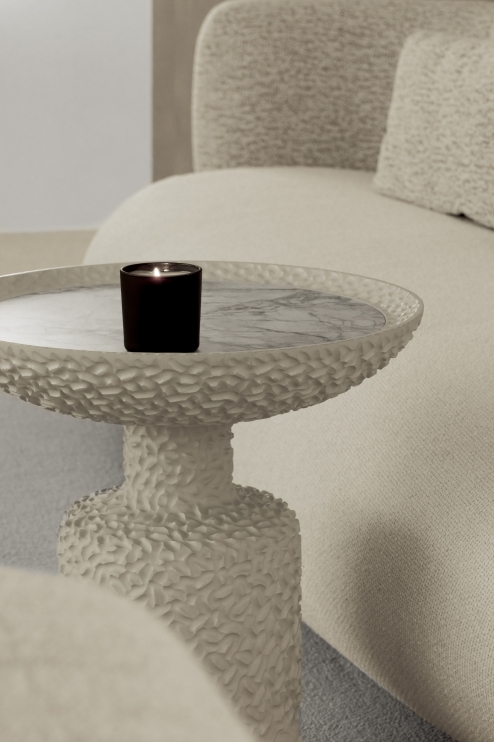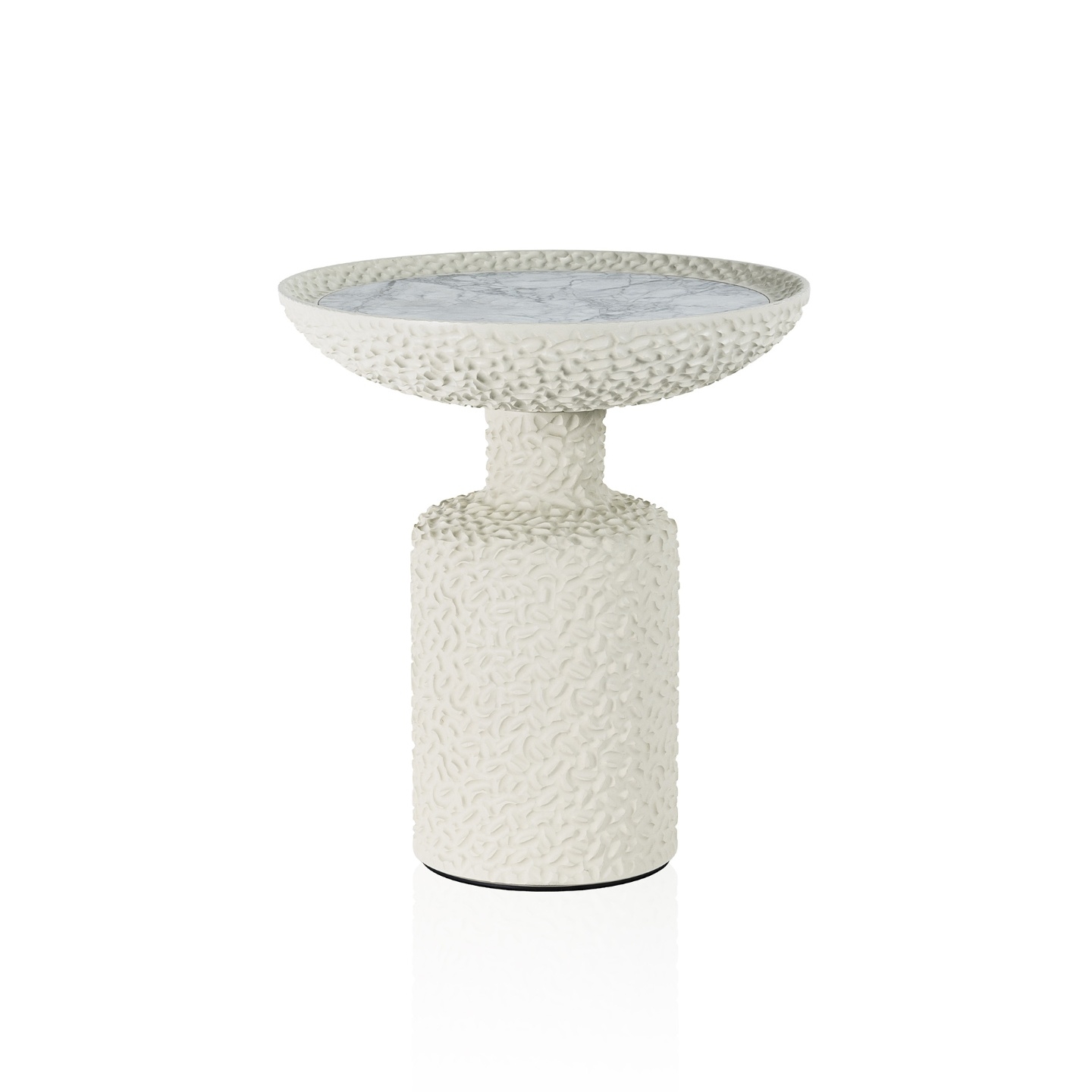 Estrutura: Madeira maciça, madeira maciça tingida, madeira carved Tampo: Mármore