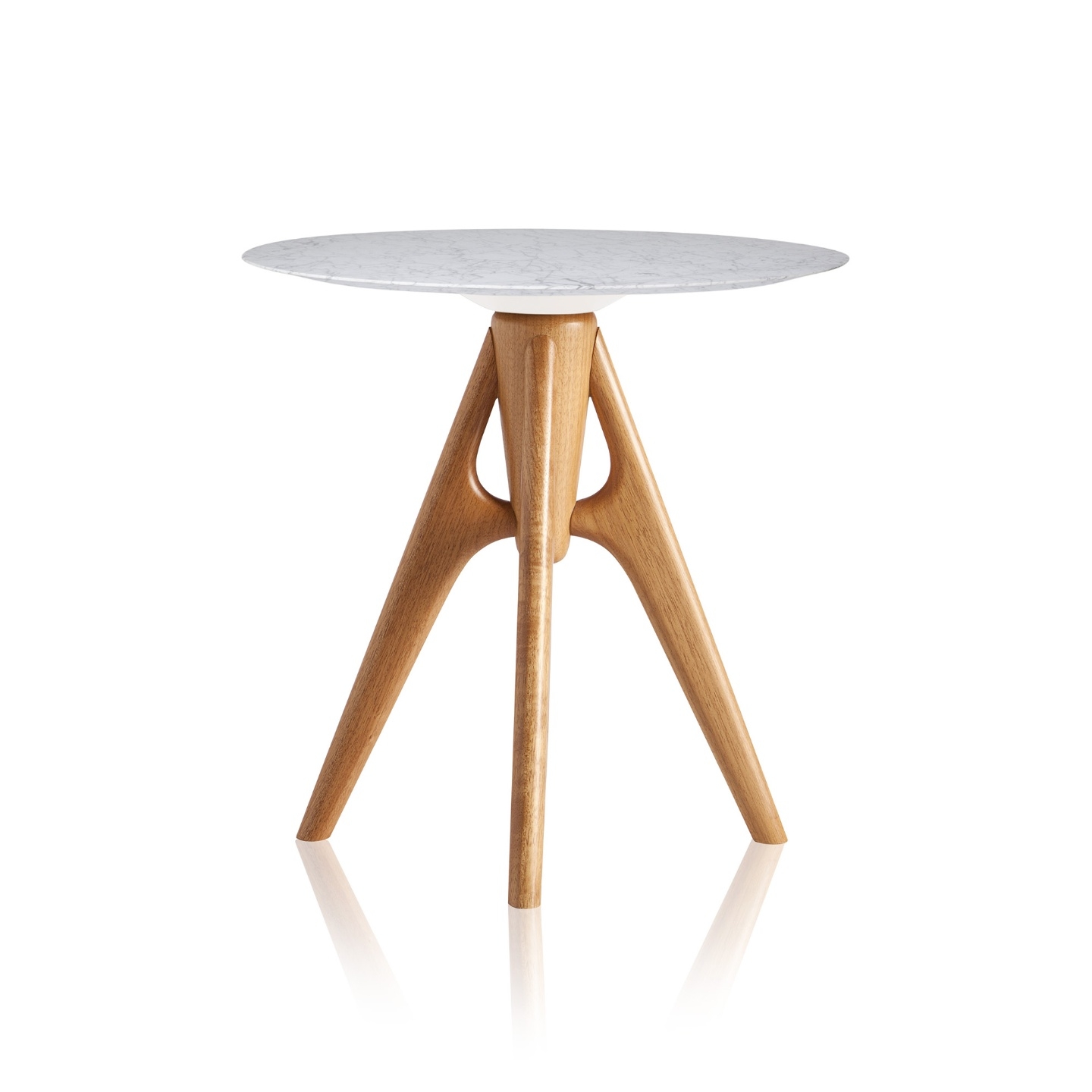A forma como principal elemento. O desenho contemporâneo da mesa em madeira possibilita sua composição com outras peças de diferentes materiais. Técnicas tradicionais, um pouco de nostalgia e desenho equilibrado são os pontos altos da peça.