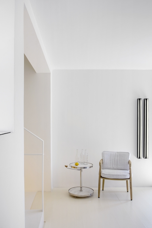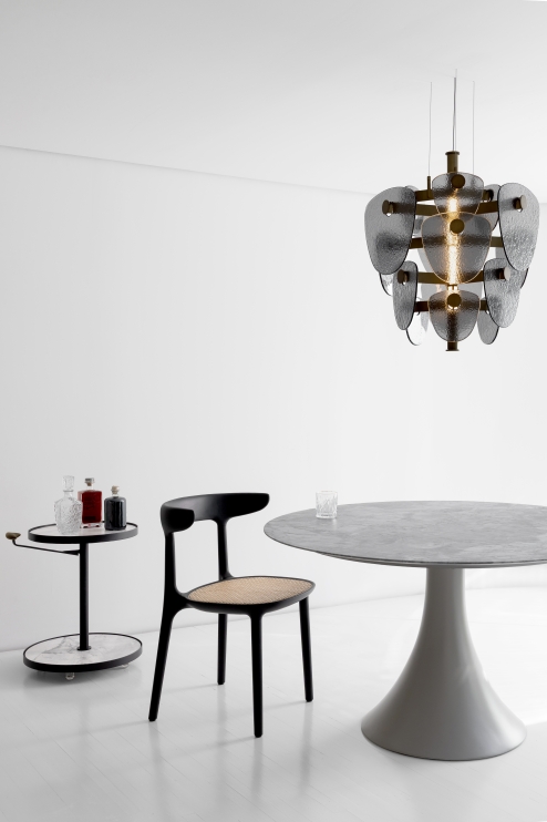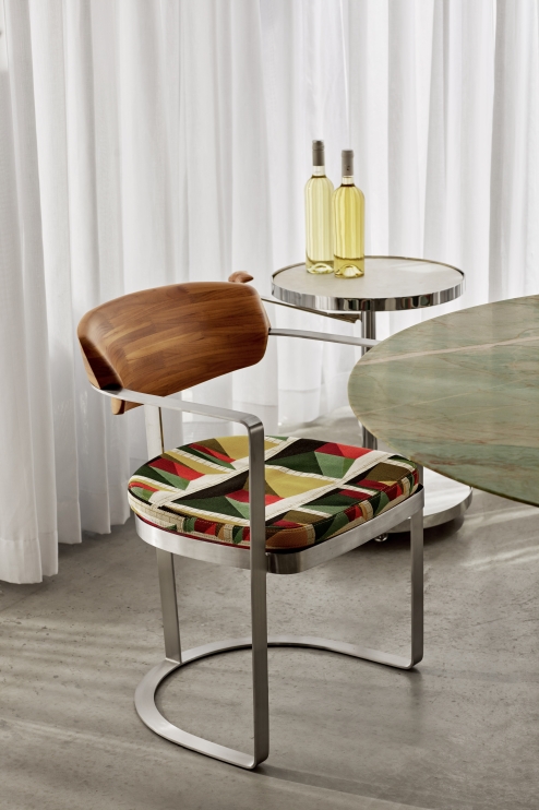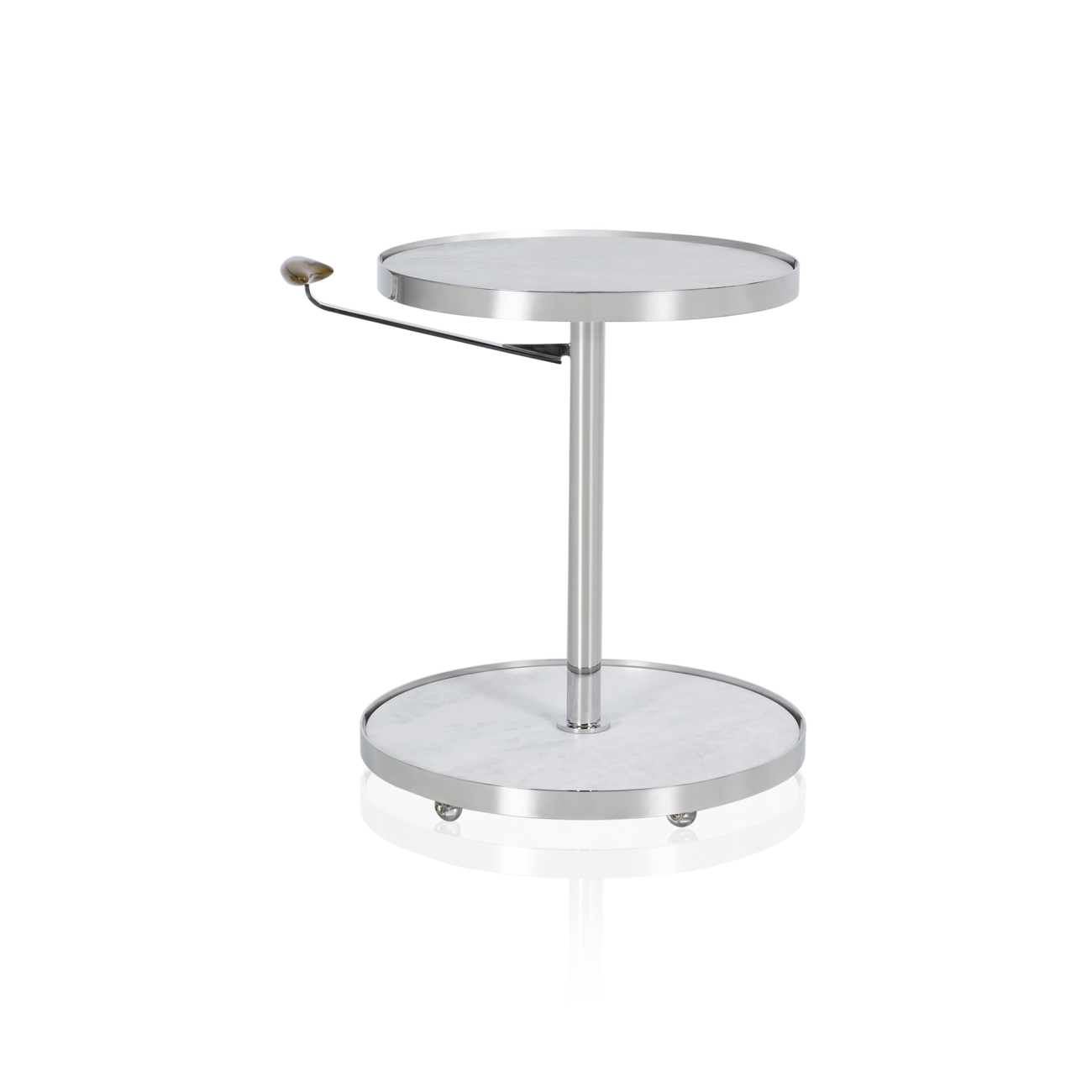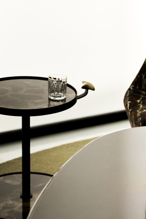 A coleção One recebe seu nome em referência à unidade. Sua construção versátil permite seu uso como mesa de apoio ou bar, com dois tampos para suporte. O espaçamento entre o tampo e a borda facilita a limpeza em caso de contato com líquidos, garantindo a durabilidade do produto. Equipada com rodízios e uma alça para facilitar a mobilidade, resulta em um produto altamente funcional.