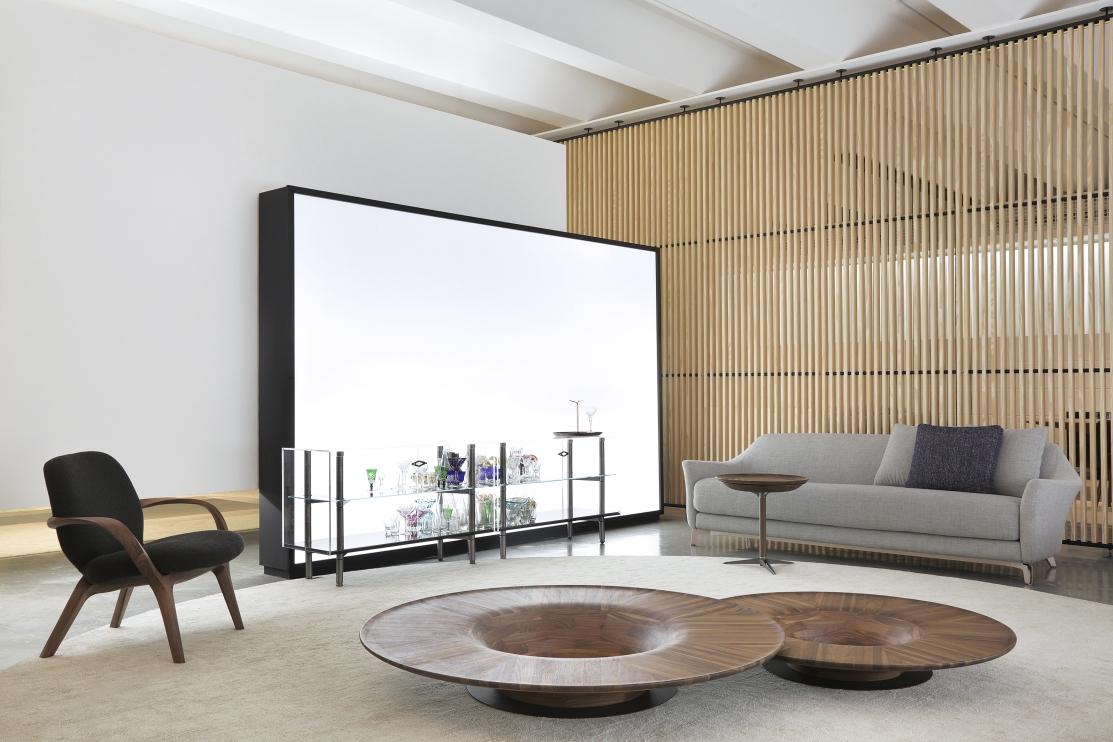 A linha TRINTA é composta de mesas altamente versáteis. Um equilibrado pensamento que revisita referencias clássicas. Uma abordagem formal que traduz simplicidade, onde a construção e detalhes dão identidade e individualidade. As diversas dimensões possíveis, além das geometrias de tampos se tornam polivalentes e passiveis de interpretações. Peças que celebram leveza, delicadeza e a pureza das formas.