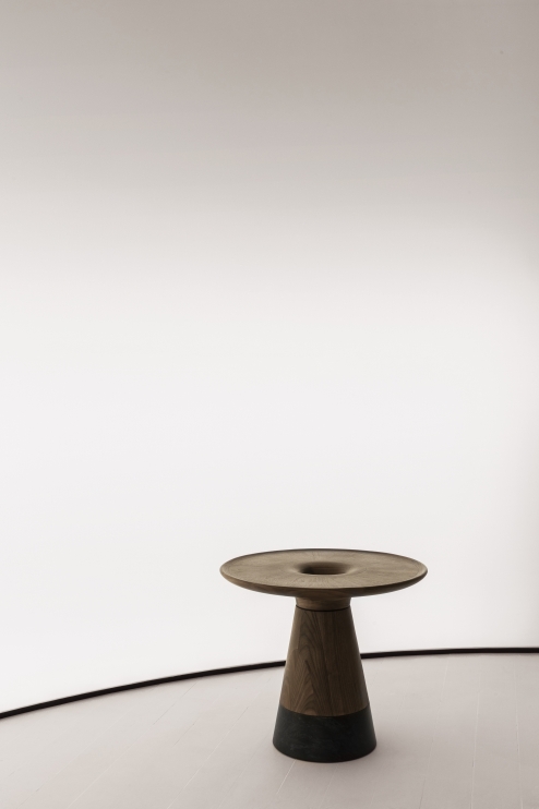 Possui desenho fluido em uma forma elementar arredondada. Suas arestas são levemente pronunciadas, enquanto o centro vazado parece integrar-se ao chão. Escultural e contemporânea, permite composições em diversas áreas sociais como um living ou um lobby.