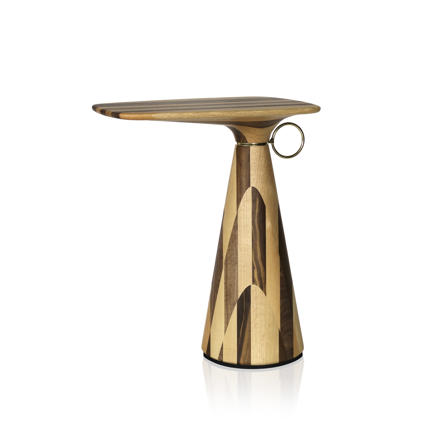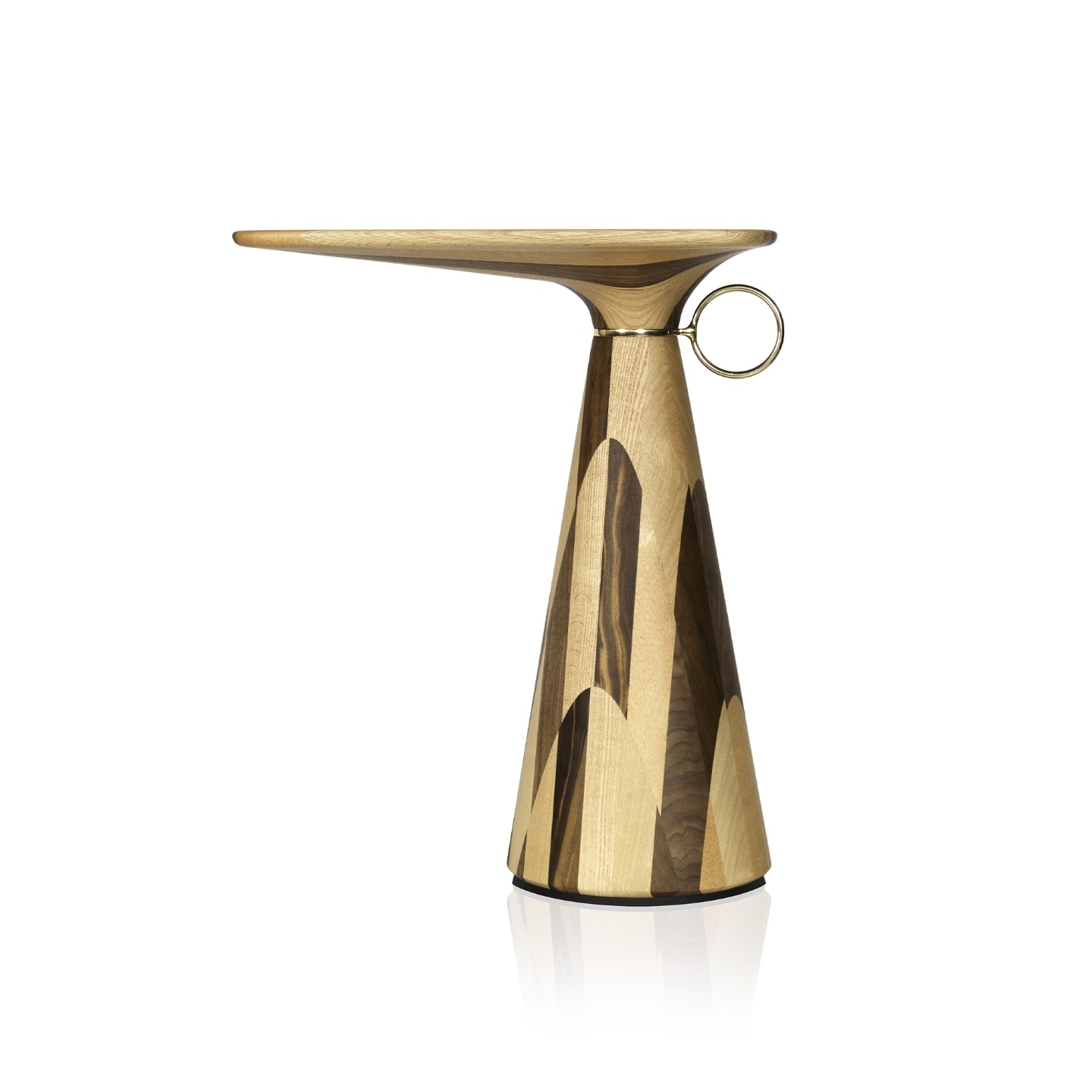 A flexibilidade da madeira e do composto de cortiça permitiu ao designer Jader Almeida reproduzir uma forma ousada à mesa Wed. Alça de latão e suas linhas fluidas, conferem elegância e praticidade a peça.