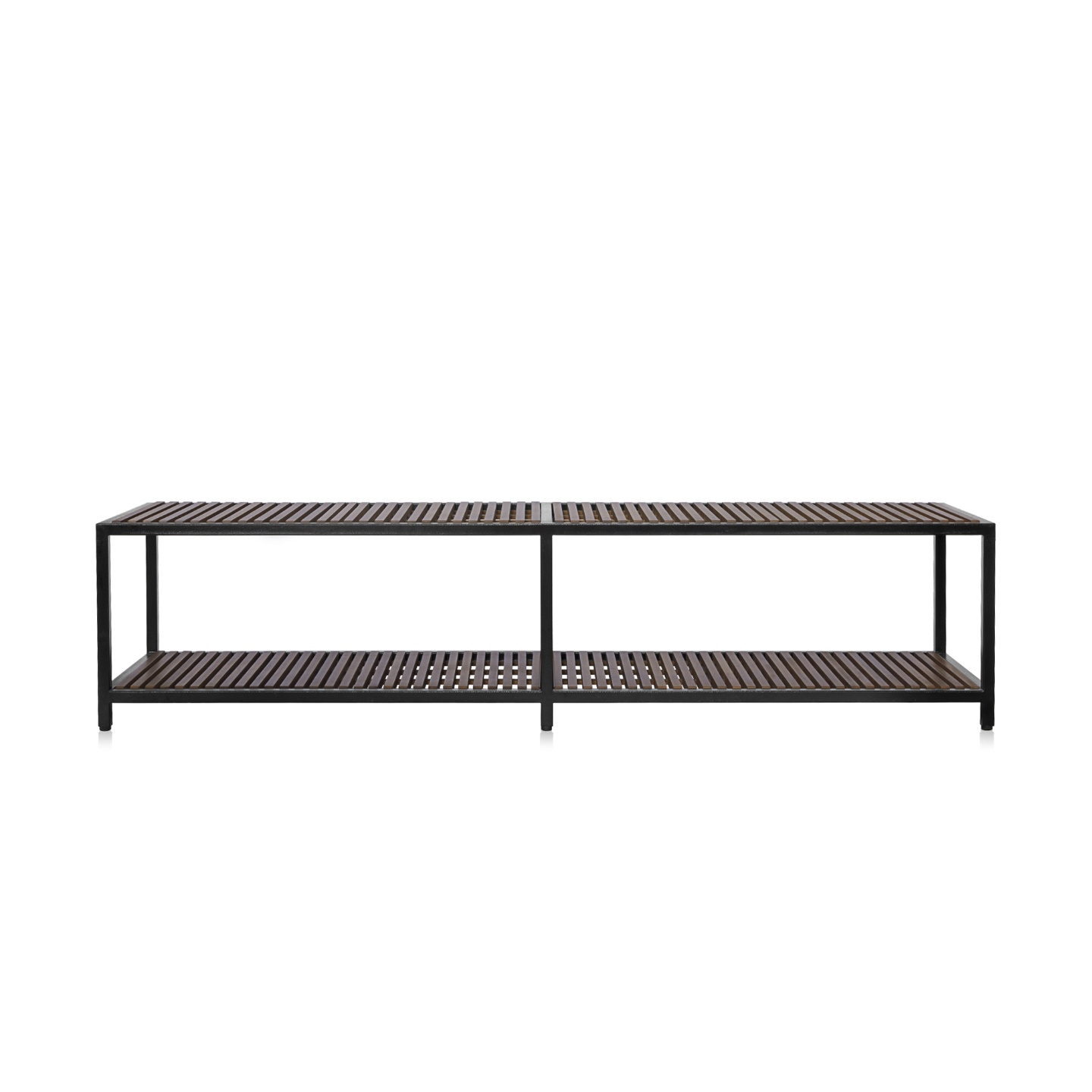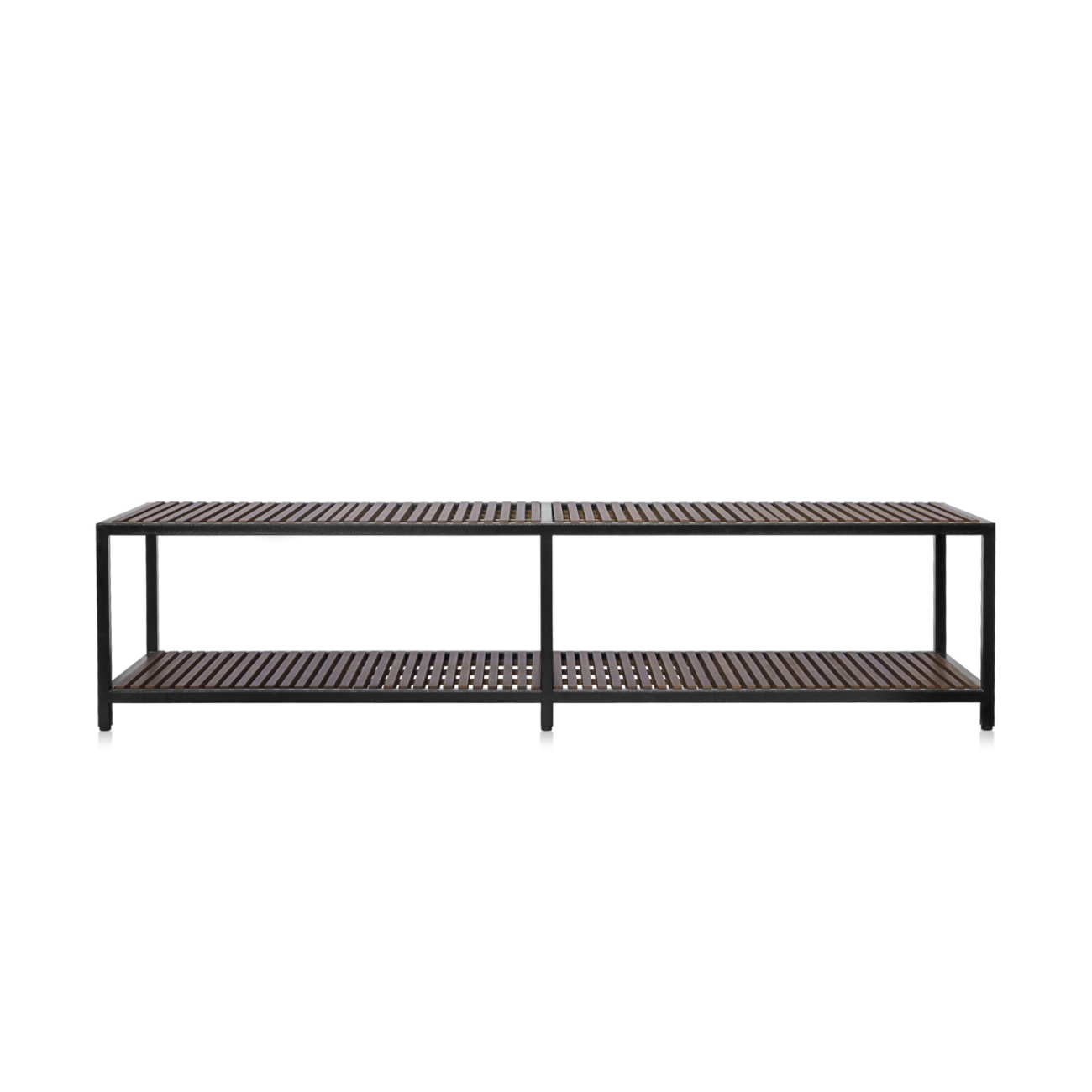 Estrutura: Metal, pintura eletroestática Tampo: Madeira maciça, madeira maciça tingida