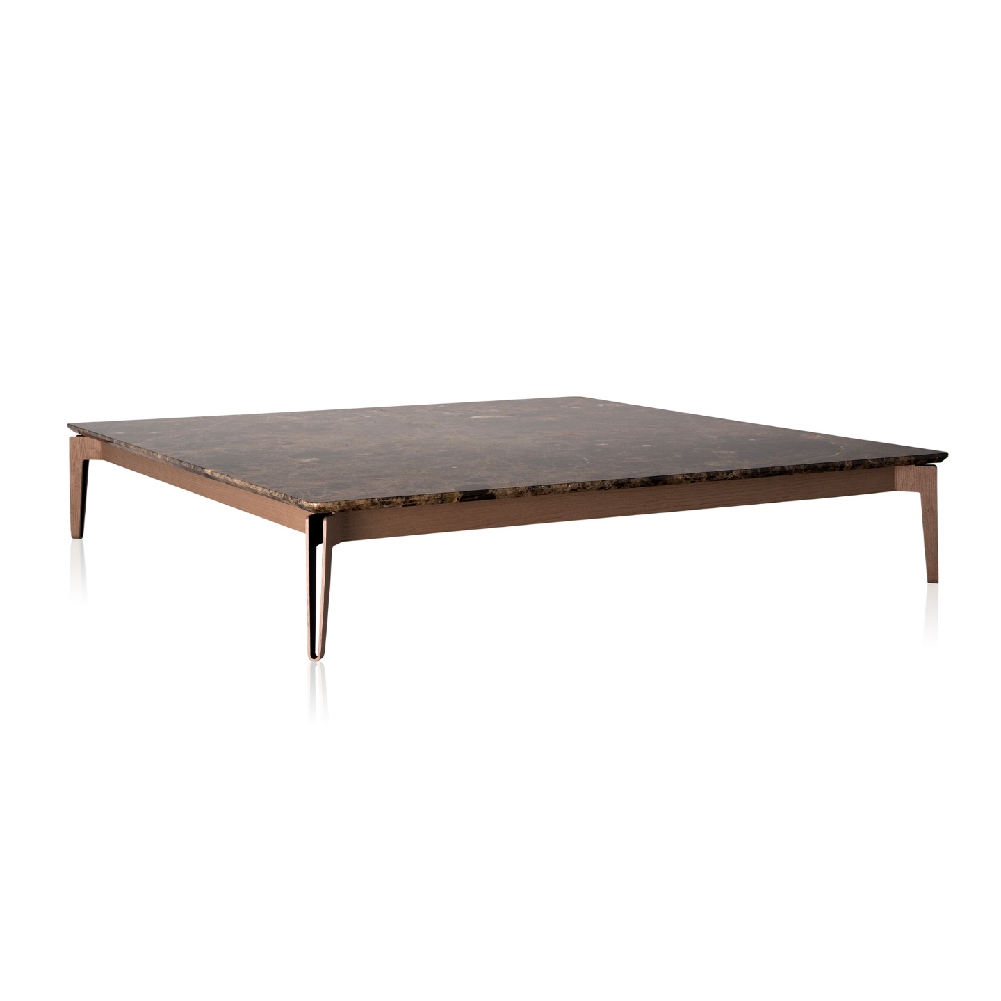 Tampo: Laca, lâmina natural, lâmina tingida, vidro, mármore Pés: Laca, lâmina tingida, pintura especial, metalizado, gane