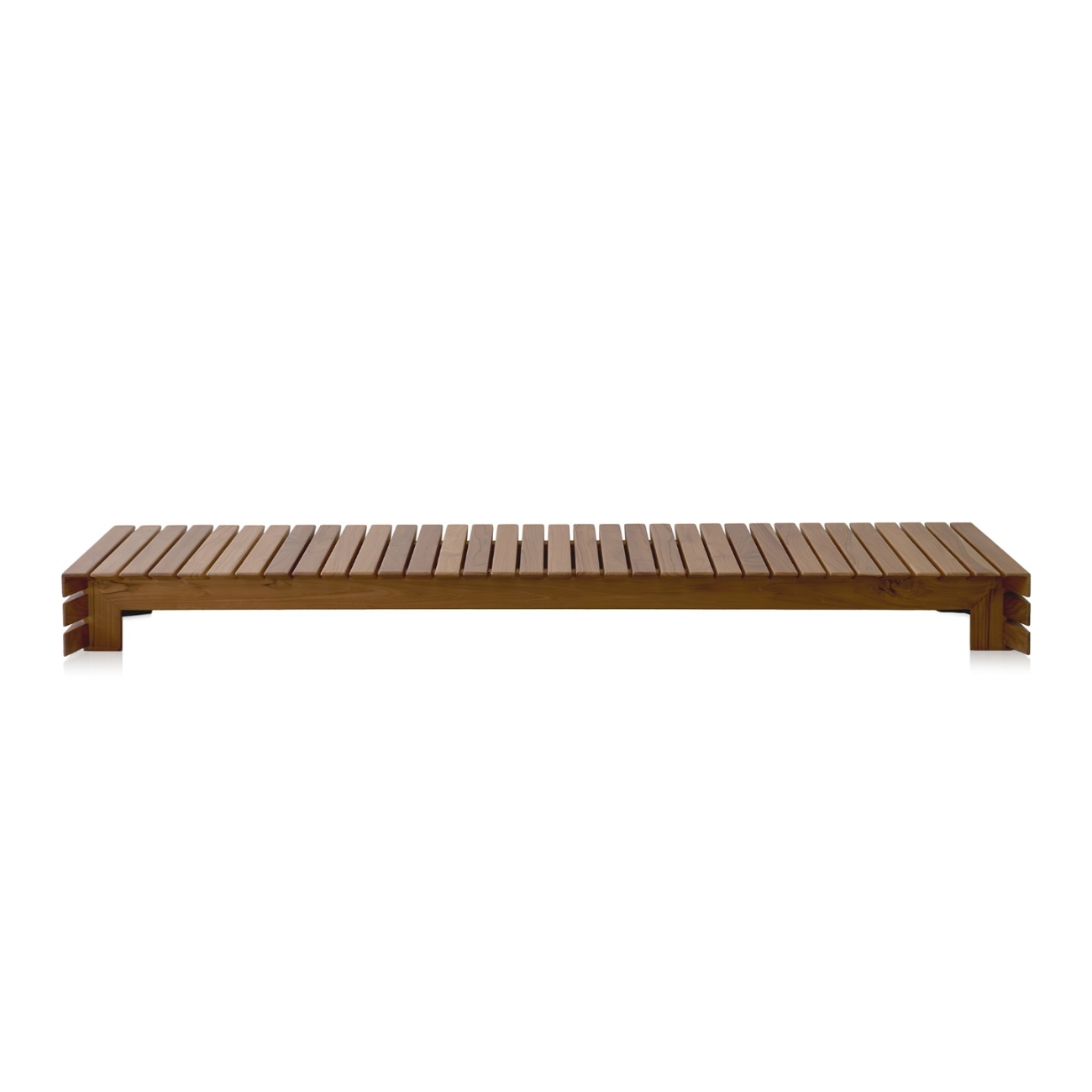A mesa de centro LILAH / GARDEN preza pela funcionalidade em áreas externas, uma vez que apresenta materiais adequados e uma superfície de fácil secagem em caso de chuva. A estrutura em ripas de madeira paralelas possui desenho ortogonal, mas suas arestas levemente chanfradas dão leveza visual à composição. Em 2020, a mesa de centro recebeu a opção de ter parte em mármore, e a harmonia dos dois materiais confere elegância e mais versatilidade à peça.