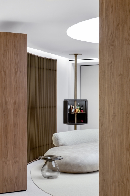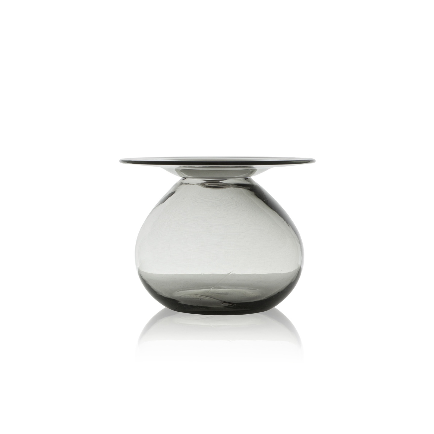 Cada peça é única, feita a mão onde as pequenas bolhas e as ligeiras alterações formam a característica orgânica que criam perspectivas diversas, as mesas de apoio lembram o movimento circular de um lago quando algo atinge sua superfície.