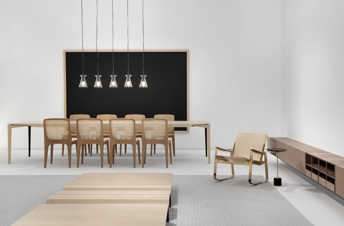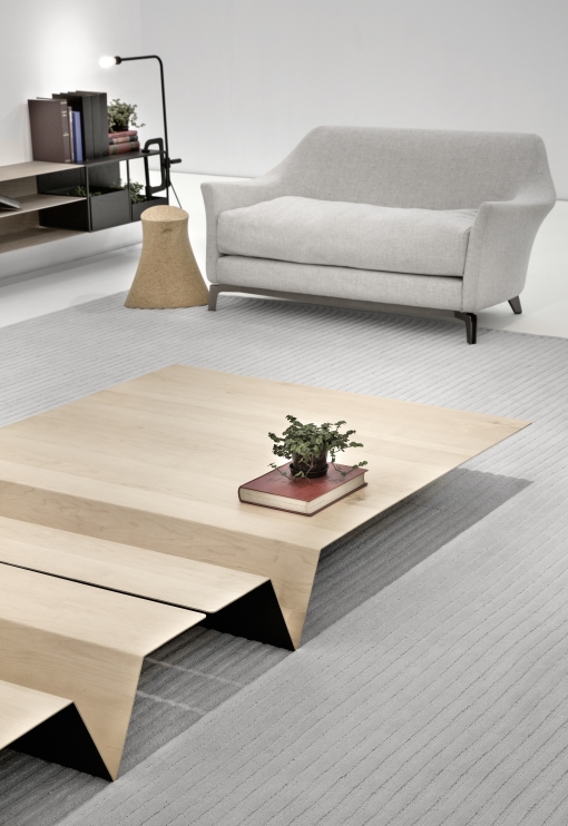A mesa de centro Raiz explora a inquietação dos traços matemáticos, traduzidos em aço carbono laminado. A harmonia entre formas elementares expressam a assinatura de Jader Almeida.