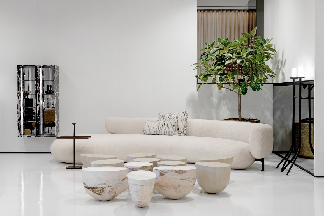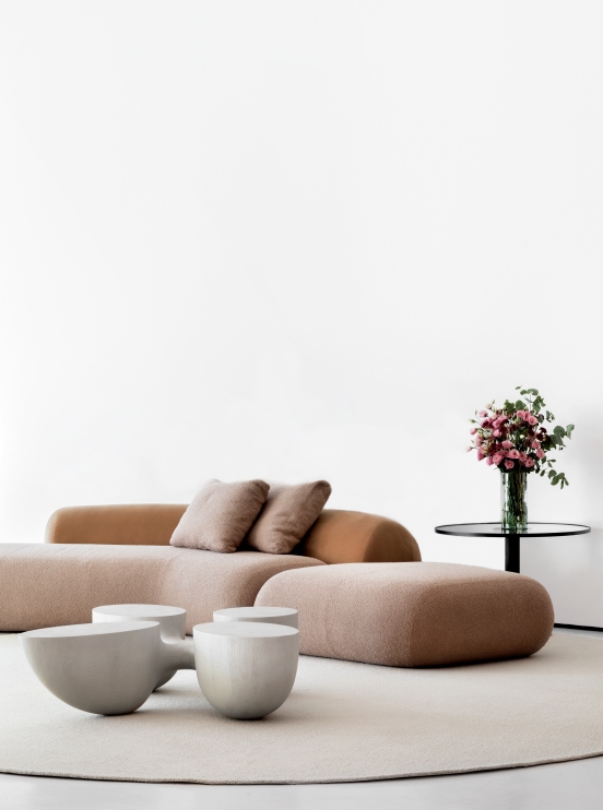 Para a comemoração de 10 anos da icônica mesa de centro ROOTS - originalmente feita em madeira composta ou cortiça - Jader Almeida desenvolveu uma versão totalmente esculpida em mármore. As linhas orgânicas e arquitetônicas do conjunto, conferem versatilidade de uso a essa peça inusitada.
