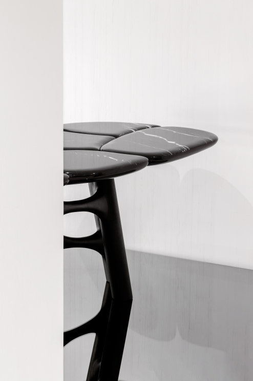 Tampo: Mármore Subtampo: Laca Base: Madeira maciça, madeira maciça tingida