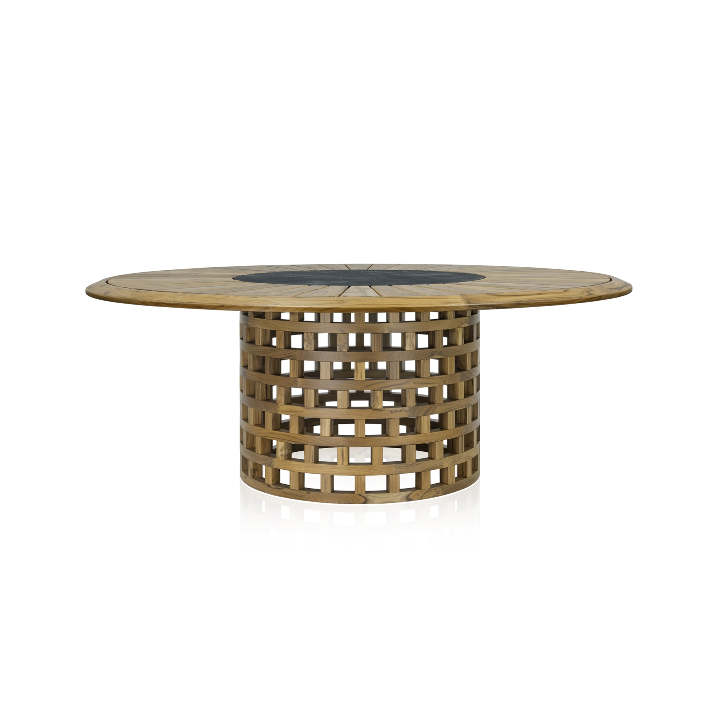 Tampo: Madeira maciça, madeira maciça tingida Base: Madeira maciça, madeira maciça tingida Centro do tampo: Vidro, mármore Estrutura: Metal, pintura eletroestática