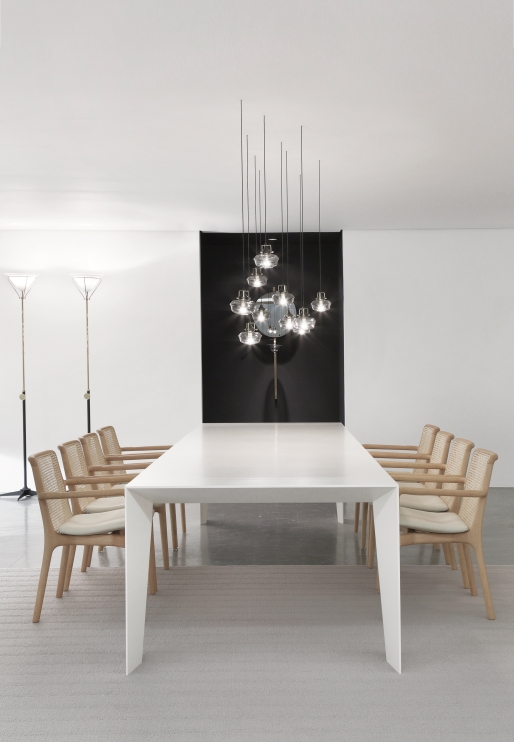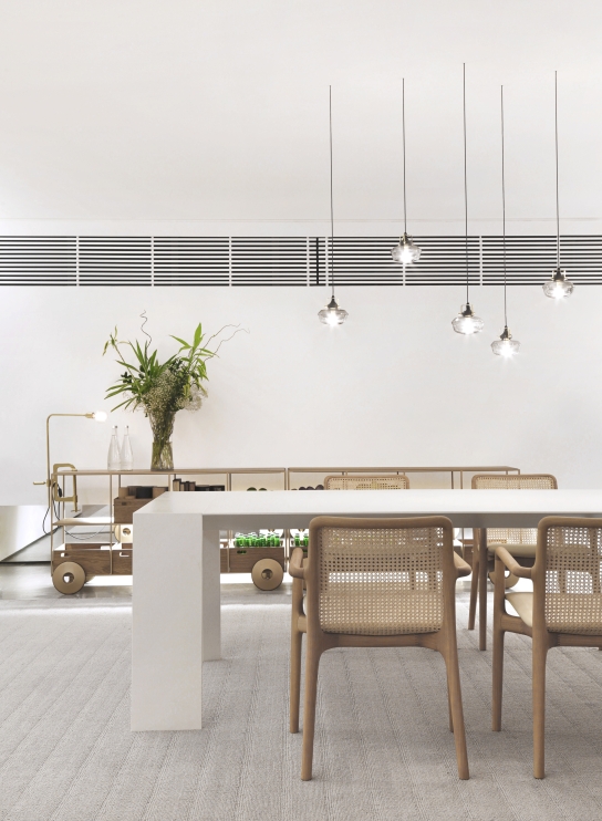 Com desenho tecnicamente racional, purista e arquétipo, a coleção ELLE se destaca por sua leveza visual aliada a solidez estrutural. Dotada de chanfros bem delineados, precisão nos detalhes e bordas extremamente finas, os produtos tem a capacidade de moldarem-se a qualquer estilo de ambiente, do mais clássico ao contemporâneo, reforçando os conceitos de elegância e atemporalidade proeminentes nos produtos de Jader Almeida. Como característica predominante na linha de mesas, as extremidades são como arcos que fazem a estruturação dos pés, e sustentam a superfície do tampo. No sistema, por sua vez, as gavetas com frontal liso são protagonistas e podem acomodar os mais variados objetos.