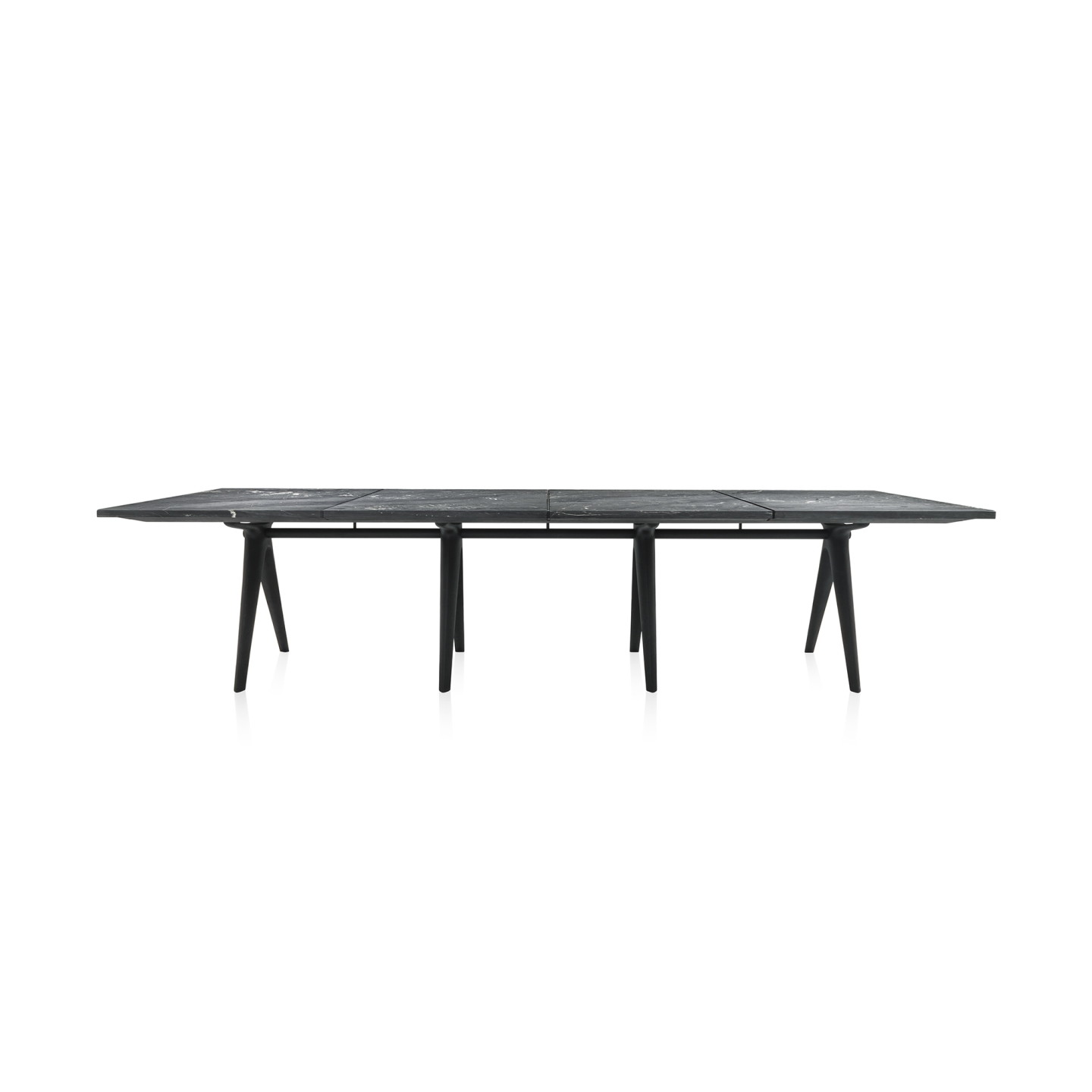 Atentar as características da pedra levigada: Cada pedra possui particularidades exclusivas, tornando-as únicas. Possui relevo, textura e veios característicos da pedra bem acentuados; Modelos de 220cm à 320cm o tampo será dividido em 2 partes iguais, de 321cm à 400cm em 3 partes iguais; Em modelos de até 220cm utiliza-se 2 bases com reforço central, de 221cm a 400cm utiliza-se 3.