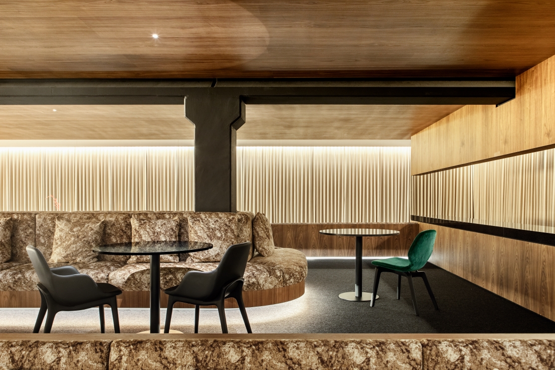 Tampo: Laca, lâmina natural, lâmina tingida, vidro, mármore Estrutura: Laca, pintura especial, metalizado