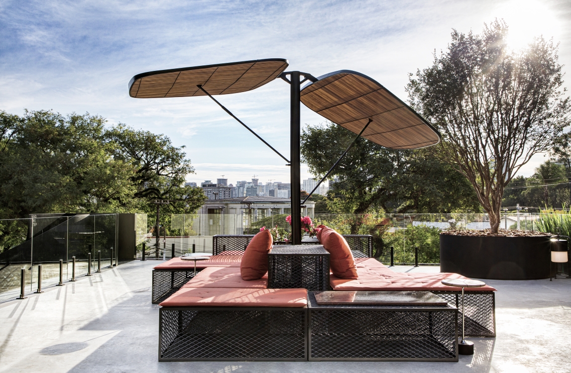 O conceito parte do princípio básico das folhas, que filtram a luz do sol e proporcionam uma sombra suave. Os elementos que filtram a luz são conectados na estrutura, mas se movem em diferentes ângulos, além de girar 360 graus no eixo perpendicular ao chão. Para diferentes momentos do dia, uma suave sombra é proporcionada.