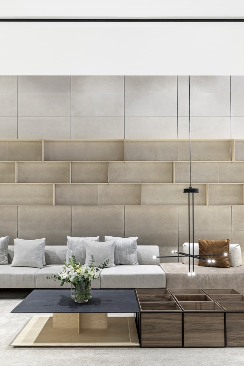 Com estética minimalista e linhas ortogonais, a luminária consiste formalmente em hastes paralelas com intersecções perpendiculares, com finas ponteiras com lâmpadas em LED. Um elemento escultórico, uma joia capaz de iluminar.
