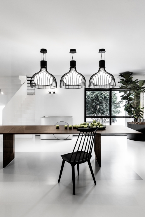 A harmonia entre materiais como metal, vidro e mármore, bem como a precisão nos detalhes, fazem com que a luminária GHOST se assemelhe a uma peça de joalheria. Sua forma orgânica e de geometria radial é escultórica, e faz com que a peça sobressaia a função principal de iluminar, e gere versatilidade às diferentes interpretações para qualquer ambiente.