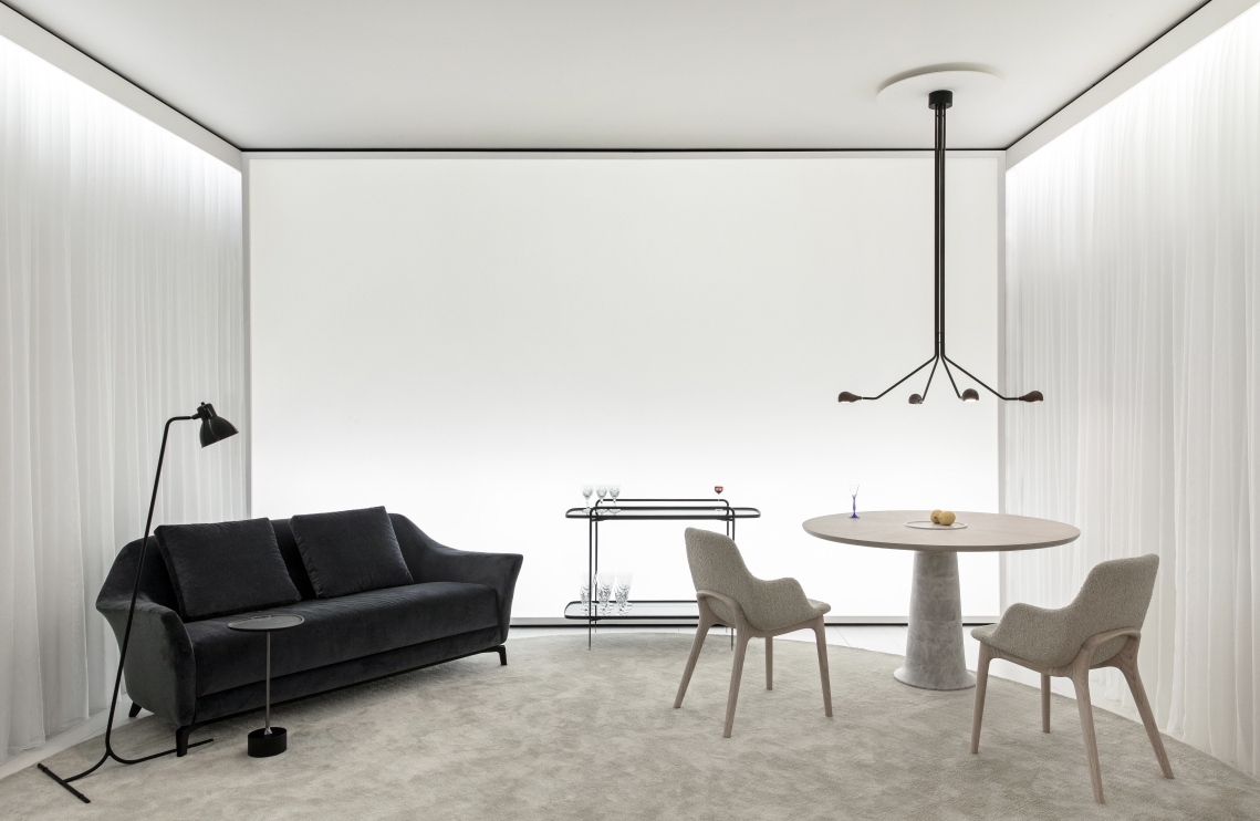 O equilíbrio entre a madeira e os metais garante beleza e identidade. O desenho calmo e elegante é fácil interpretar, além das possibilidades de regular a direção da luz, a leveza e a delicadeza das formas fazem com que esta luminária se comunique naturalmente com todos os objetos em seu contexto.