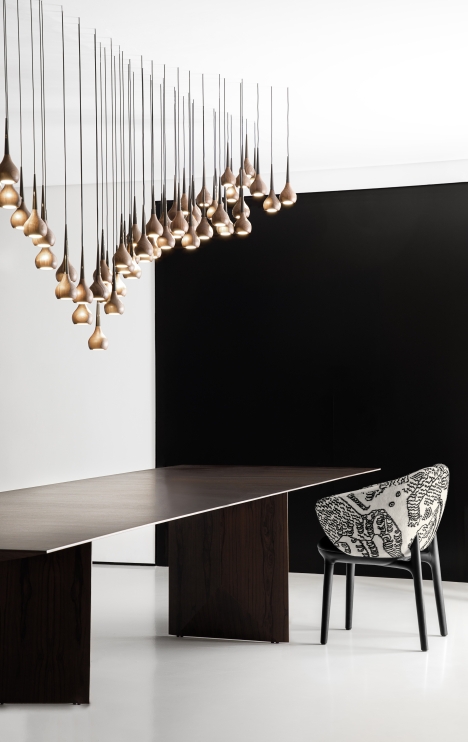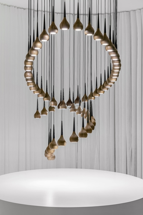 O equilíbrio entre a madeira e os metais garante beleza e identidade. O desenho calmo e elegante é fácil interpretar, além das possibilidades de regular a direção da luz, a leveza e a delicadeza das formas fazem com que esta luminária se comunique naturalmente com todos os objetos em seu contexto.