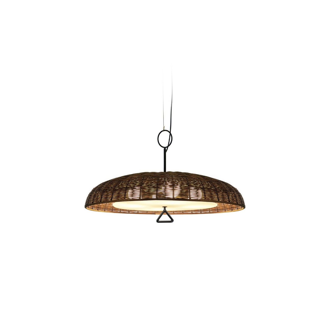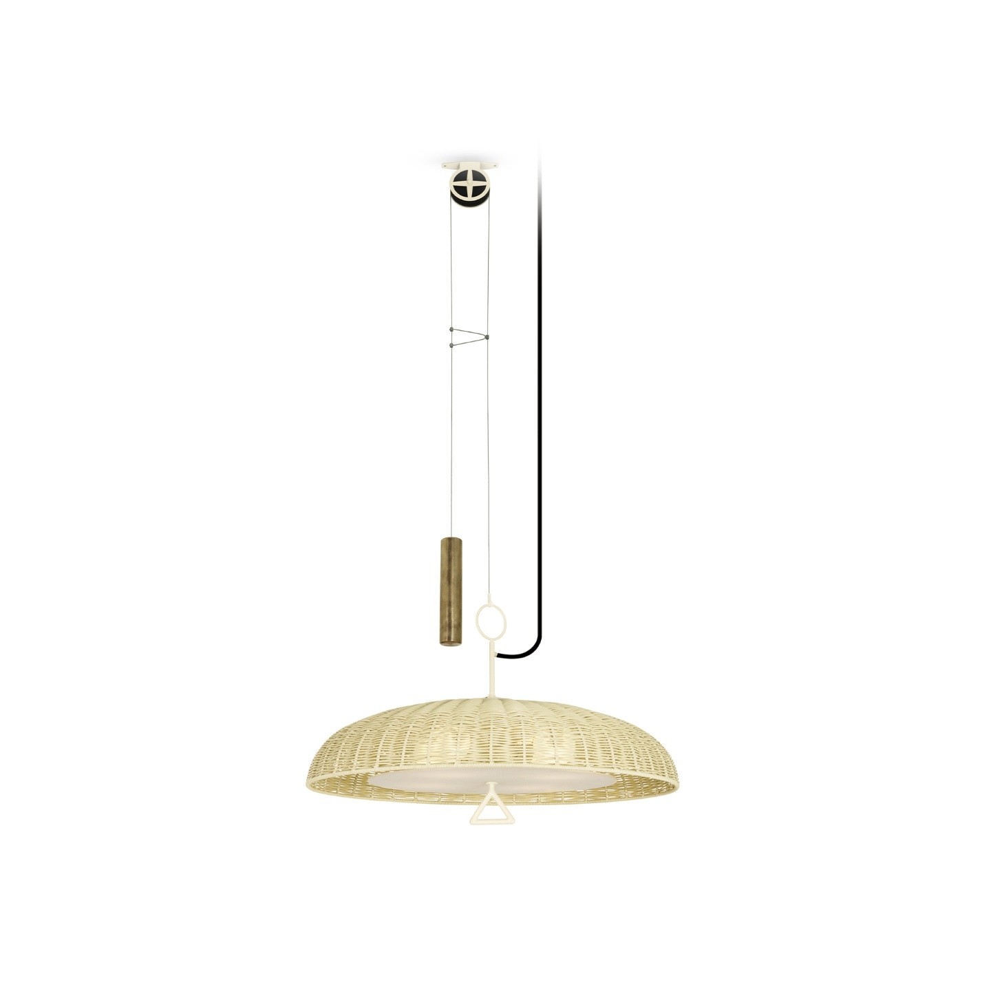 A coleção Non parte do formato do chapéu "Non La", utilizado nas plantações de arroz. Sua grande área circular e baixa altura criam uma abóbada achatada, resultando em uma geometria instigante. Enquanto a cúpula é feita em uma trama manual, que resgata técnicas artesanais, as demais peças são executadas em metal, usinadas com precisão, como o pêndulo, que permite a regulagem da luz. Quando próxima de uma superfície, a luz é indireta; afastada, torna-se homogênea no ambiente. As lâmpadas contam com filtro, capaz de criar uma atmosfera aconchegante com luz difusa e suave. Em contraste com a função do chapéu de criar sombra, aqui o produto é usado para difundir a luz.