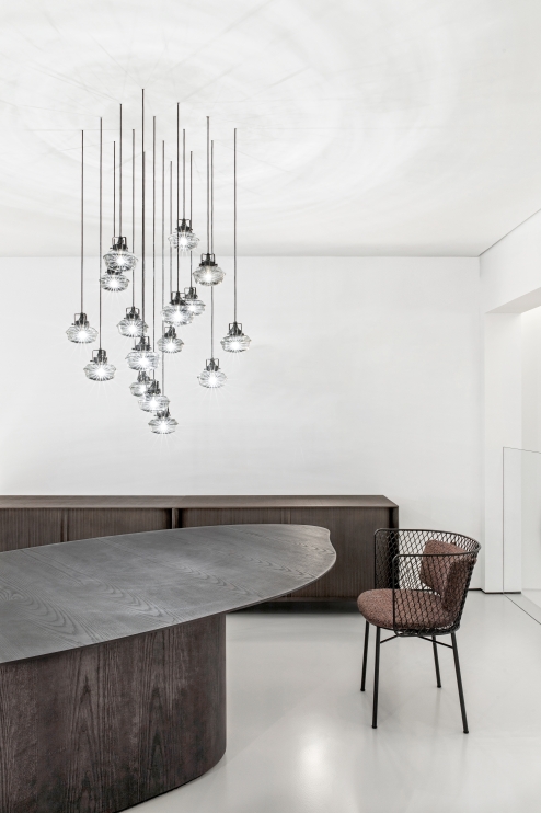 O Nutt é composto por vidro soprado, com pequenas imperfeições naturais de seu processo de fabricação, que tornam cada peça única. A combinação sutil e elegante de materiais estimula a imaginação. Os pequenos pontos de luz podem ser agrupados ou utilizados individualmente, promovendo diferentes interpretações e sensações.