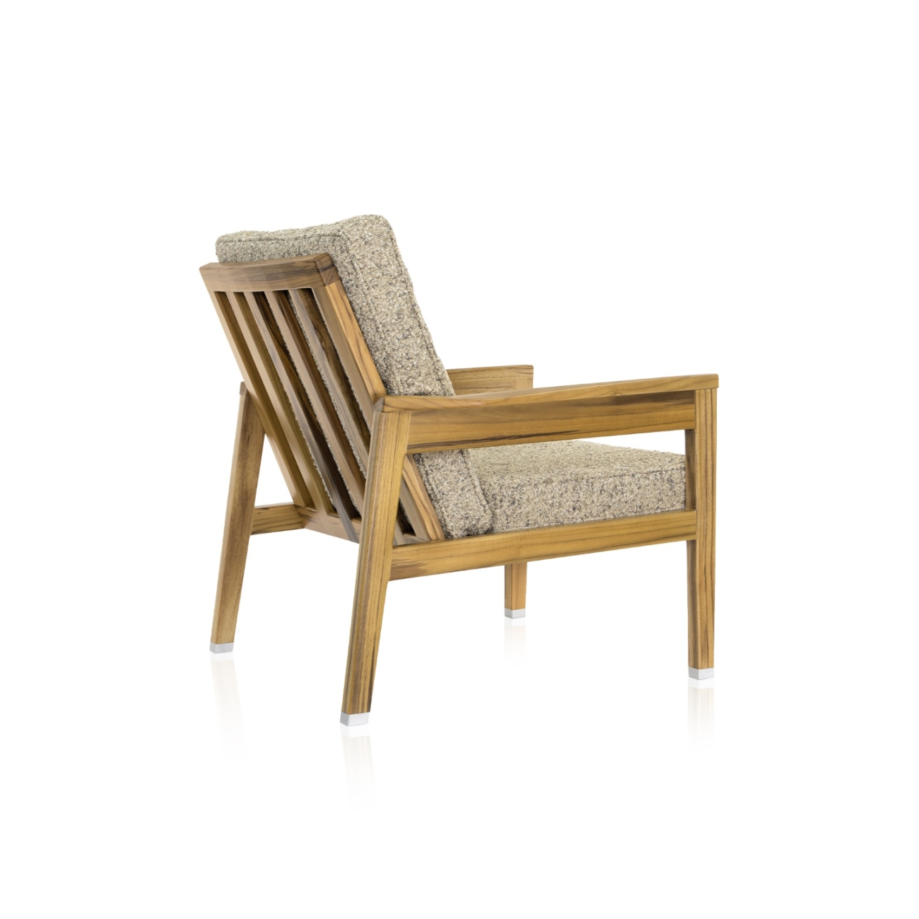 Estrutura: Madeira maciça, madeira maciça tingida Assento e encosto: Estofado revestido em tecido Ponteira: Metal Braços: Madeira maciça, madeira maciça tingida