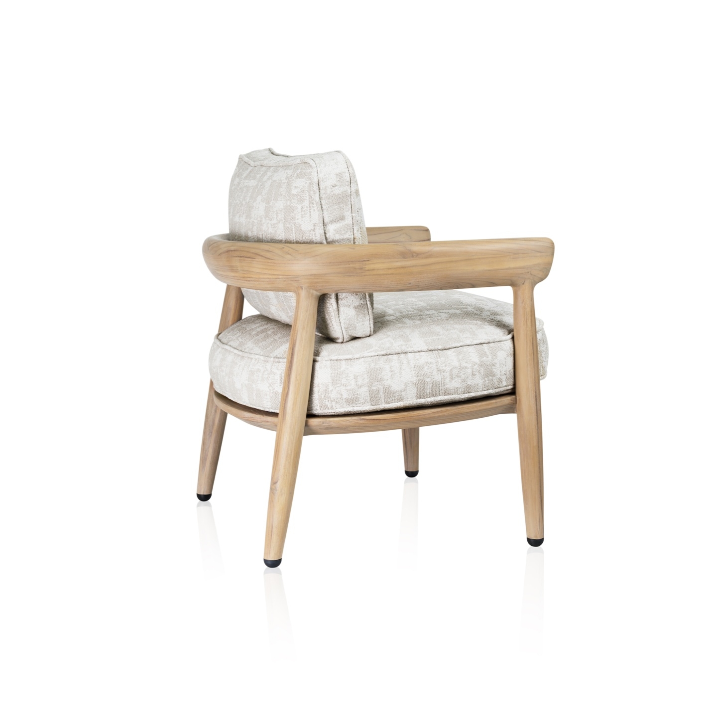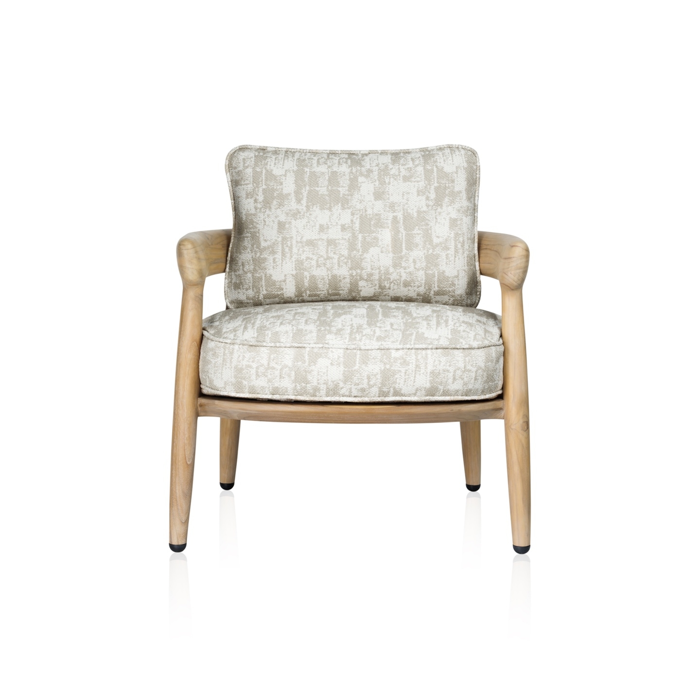 Estrutura: Madeira maciça, madeira maciça tingida Assento: Estofado revestido em tecido Encosto: Estofado revestido em tecido